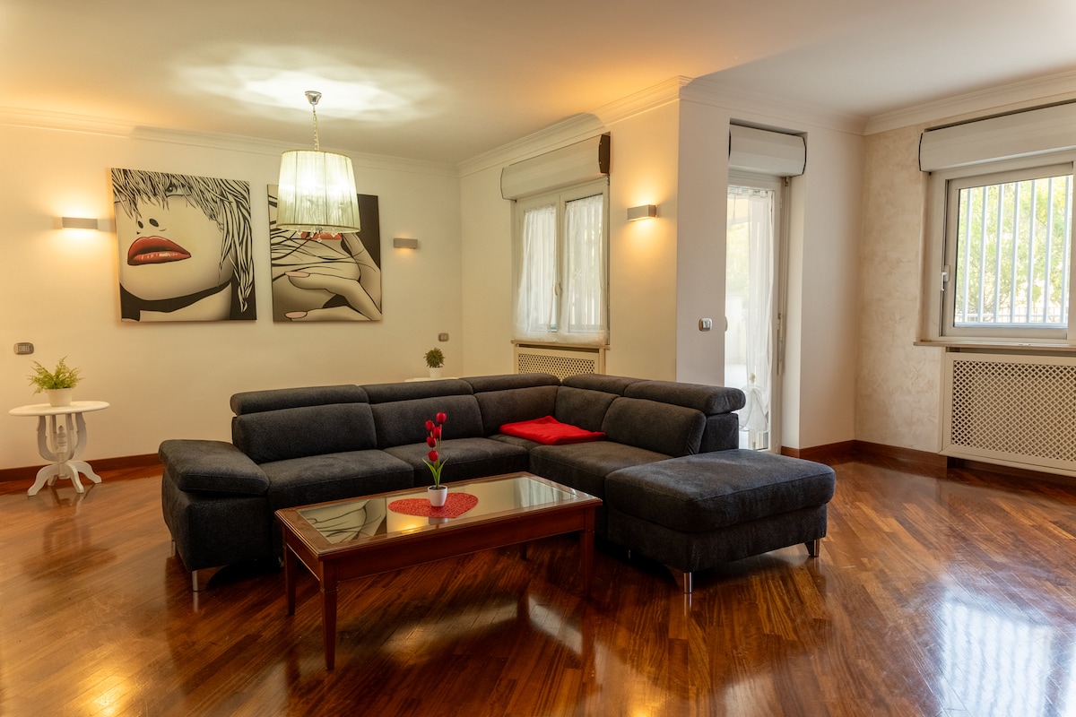 °veliko stanovanje v osrčju Caserte v kompleksu »Piazzetta Edestibili«, stavbi iz obdobja, zgrajena v poznih 1800-ih. Stavba velja za eno najbolj prestižnih v mestu Caserta, le streljaj od kraljeve palače. Stanovanje je sestavljeno iz velike dnevne sobe, kuhinje, opremljene z vsem udobjem, dveh kopalnic, ene s prho - kromoterapije - hidromasaže in ene, ki se uporablja kot pralnica, ter prostorne spalnice z veliko garderobno omaro.