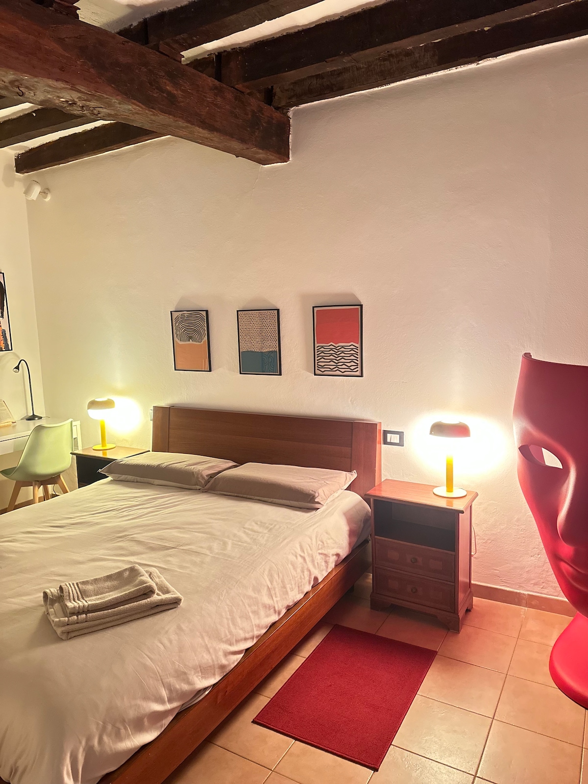 Prijetno stanovanje z zasebnim zunanjim prostorom in neodvisnim vhodom v bližini središča Creme. Stanovanje ima vse udobje in je priročno, da ga dosežete. Dekor je preprost in udoben z izpostavljenimi lesenimi tramovi. Majhno zasebno dvorišče, tlakovano s kamnom, vam omogoča kosilo na prostem. Območje je zelo mirno in v 10 minutah hoje lahko pridete do središča mesta in postaje. 3 kolesa 🚲 so na voljo brezplačno.