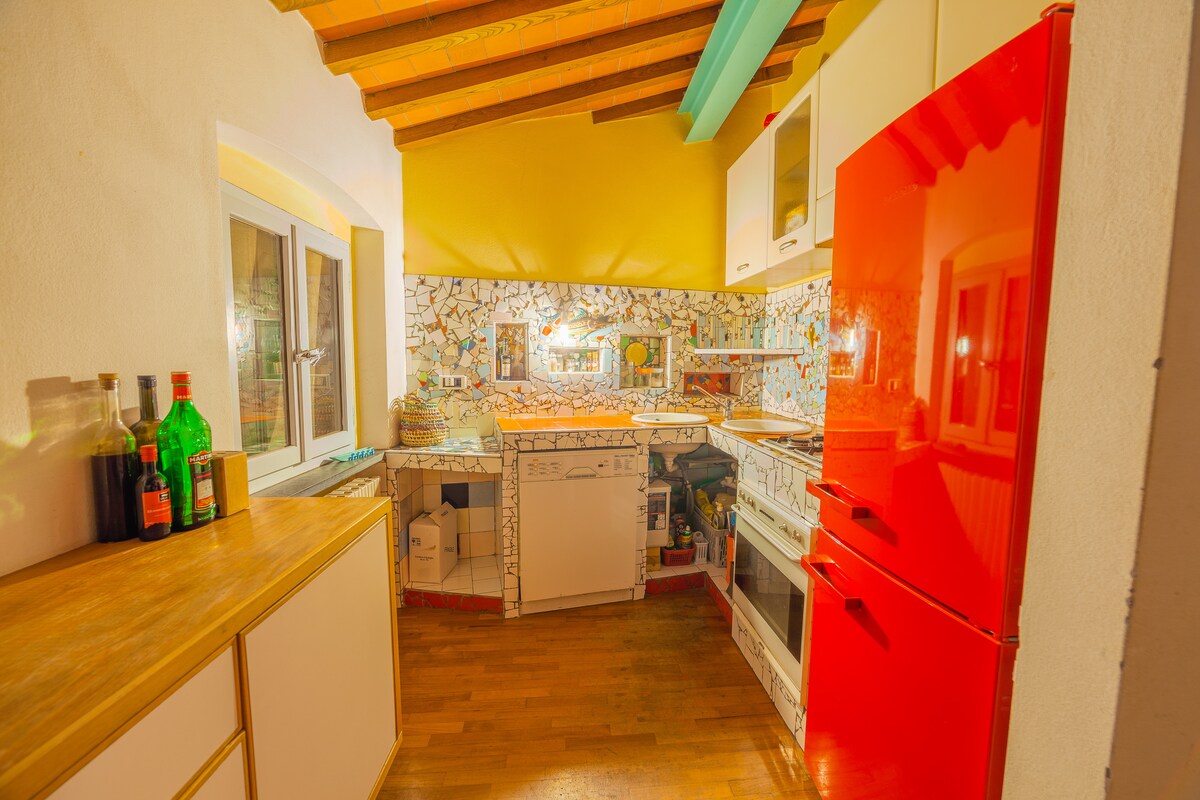 V stanovanjskem območju,izven zgodovinskega centra, je namestitev fino opremljena in udobna.Ima neodvisen vhod,je del toskanskega stropa s stropi in lesenimi tramovi. Sestavljen je iz dnevne/jedilnice z zakonsko posteljo in sosednjo dobro opremljeno kuhinjo (hladilnik,pomivalni stroj in mikrovalovna pečica) .Dvoposteljna soba je na mezaninu, ki je dostopen z udobno lestev. Spodaj so omare in predali. Oblikovno pohištvo.