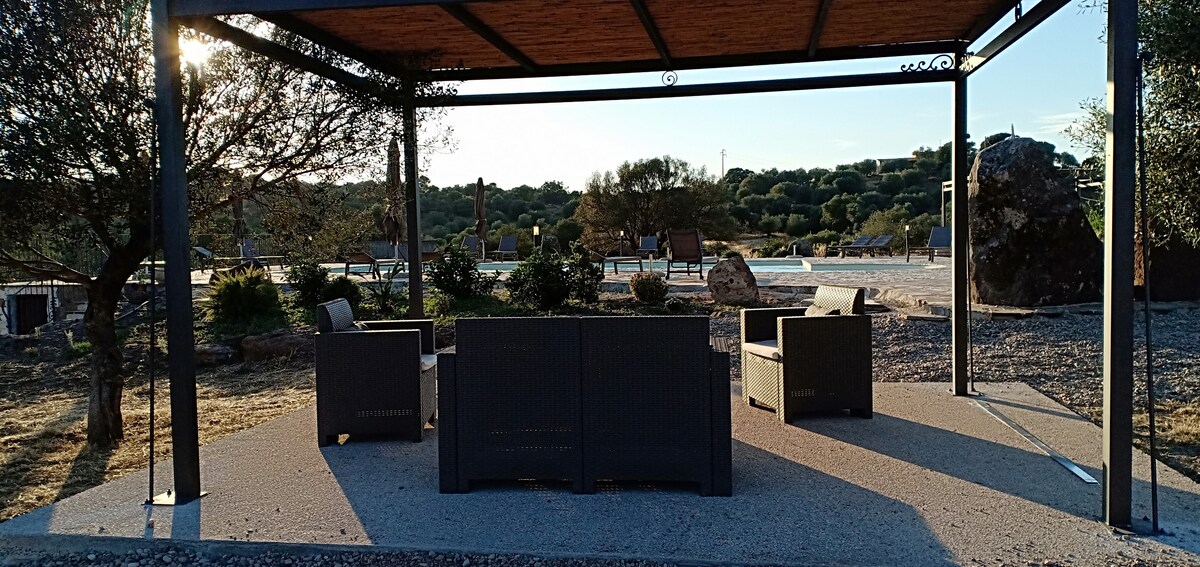 Popolnoma samostojna podeželska vila z veliko zasebnosti, velikim zasebnim vrtom in pogledom na odprto pokrajino, tik pred Oroseijem. Mirno in prostorno tudi sredi poletja. Plaža je oddaljena 18 minut hoje po ravni poti. ✓ Popolnoma samostojna vila, brez skupnih prostorov ✓ Velik zasebni vrt z oljčnim nasadom, 5.000 m2 ✓ Primerno za družine in pse ✓ Zgrajeno leta 2017, obnovljeno leta 2024 ✓ Plaža peš, 18 min