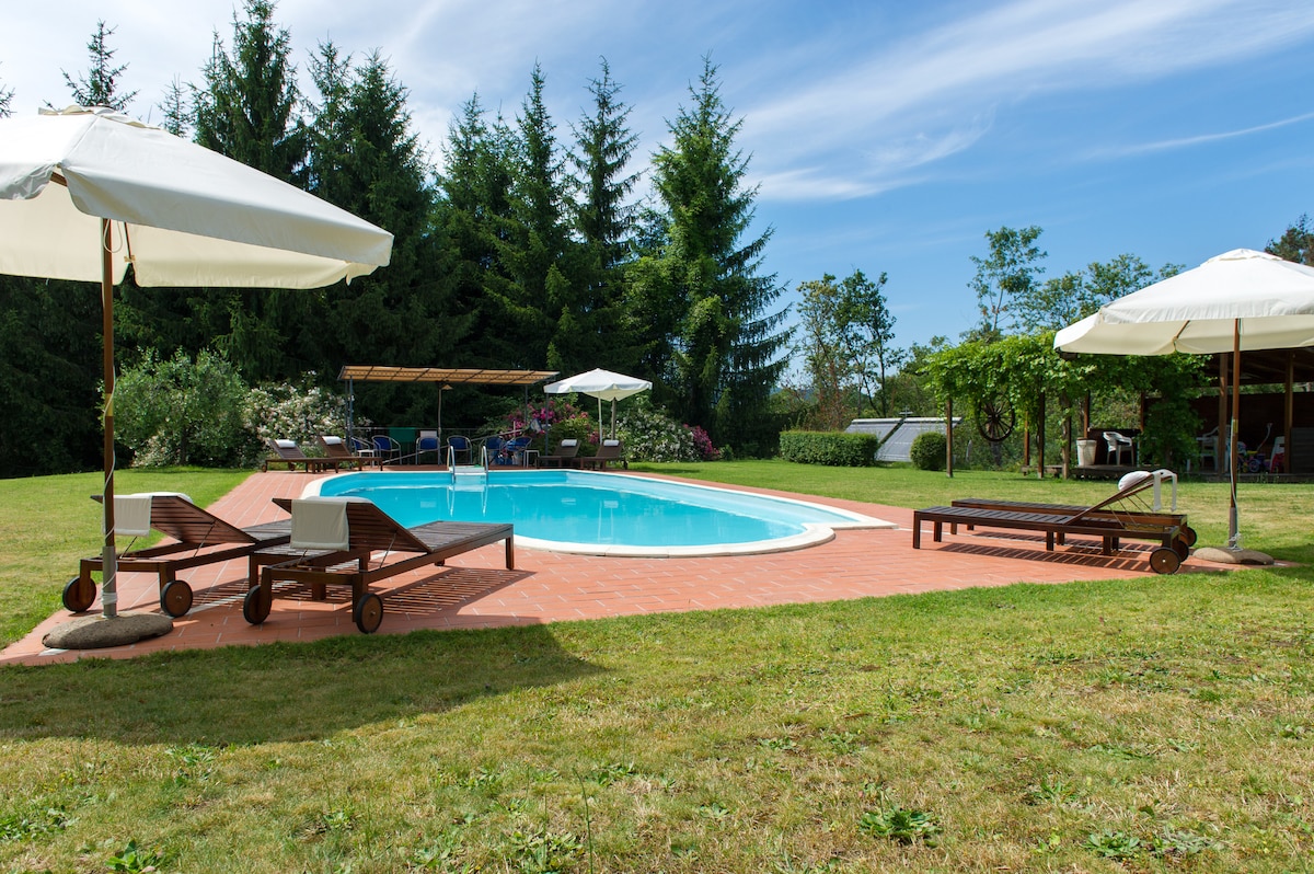 Vaše varno raziskovanje počitnic v Toskani. Neodvisno udobno prenočišče za 2 gosta z ločenim dostopom. Uživajte v razgledu na naša oljčna drevesa in okoliške gozdove ob romantičnih obokanih oknih. Rjavo kožo dobiš na skupnem vrtu. Toskansko hrano skuhajte v malo dobro opremljeni kuhinji. Poskusite večerjo po sončnem zahodu na skupni terasi v bližini vaših vrat. Lepo spi v sveži tišini hribov v naši dokaj dolini. Naša skrb kot supergostitelja je bila že vrsto let potrjena z najboljšimi mnenji naših gostov.