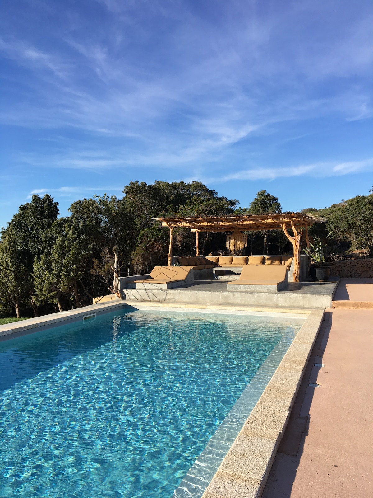 Oaza miru, zasebnosti in sprostitve v naravi le nekaj minut od plaž in najbolj znanih krajev na Costa Smeraldi. Zaradi lesenih stropov z izpostavljenimi gredami, tlemi iz terakote, pohištvom v toplih zemeljskih tonih in razgledom na podeželje je vila Turchese spokojen kraj, kjer se boste želeli ustaviti. Panoramski bazen je obdan z velikim vrtom z oljčnimi in sadnimi drevesi.