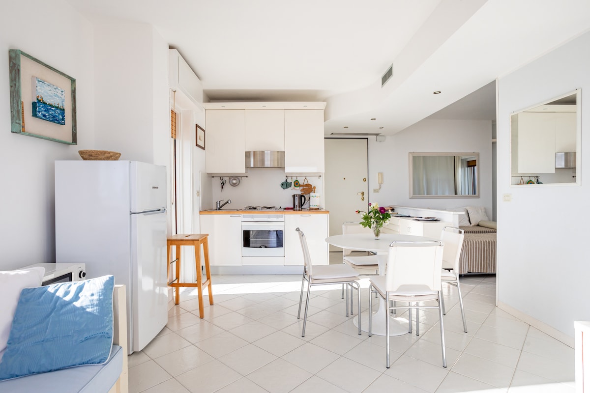 Sodobno in elegantno stanovanje se nahaja tik pred plažo, s čudovitim razgledom na morje z vseh strani (od Trsta do Lignana), zahvaljujoč 2 terasi in številnim oknom. Hiša je primerna za 4 goste, morda pa imate na voljo tudi kolesa in možnost obiska lagune z nami na naši ladji (če je eden od nas na voljo v Gradu). Moj sin Nicola mi bo pomagal sprejeti goste.