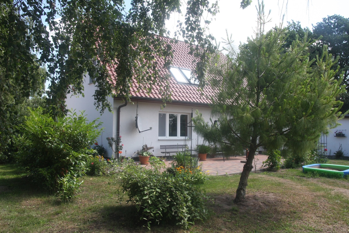 Pri nas boste našli zelo lepo, individualno stanovanje z lastnim majhnim vrtom in leseno teraso, kjer boste uživali v soncu, dnevu in večeru. Imate ločen vhod. Nahajamo se v enodružinskem stanovanjskem naselju na obrobju mesteca Barth. Nakupovanje je oddaljeno 5 minut hoje. Gastronomija je v izobilju. Do morja lahko pridete v 45 minutah s kolesom in v 15 minutah z avtomobilom. Čas potovanja Trajekt od pristanišča Barth do Zingsta približno 45 minut.