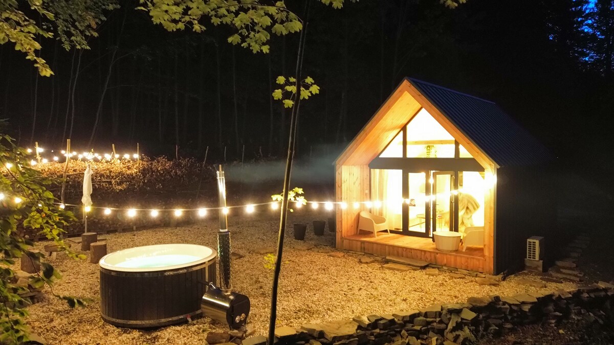 Nestled in the hills and forests lies a cottage that feels like a fairytale escape. The historic building, complemented by a newer one, offers cozy space for large groups. Accessible only by foot, this retreat offers true seclusion and tranquility. Each season has its magic: blossoming spring meadows, the forest’s summer scents, autumn’s golden hues, and winter wonderland scenes. After a day in nature, relax in the sauna or hot tub under the stars. Welcome to a place where time stands still.