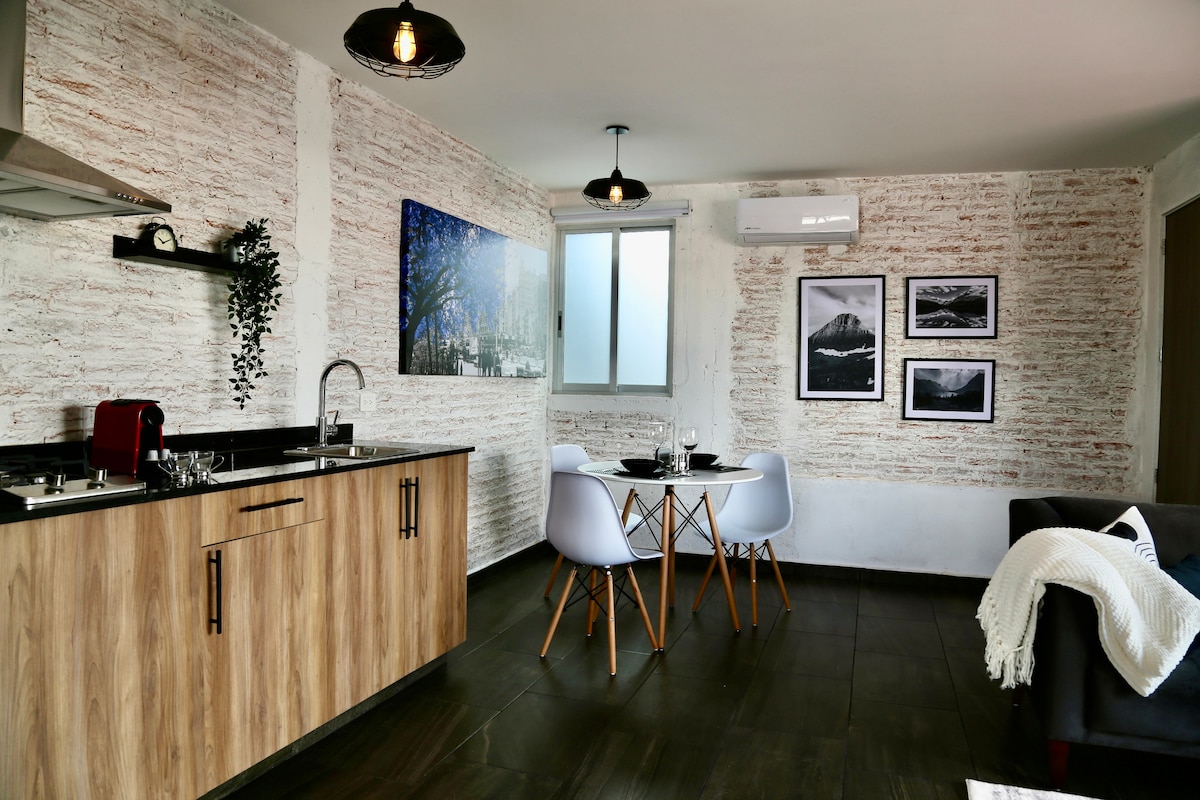 Stanovanje v mansardi z industrijskim slogom. Uživajte v svojem bivanju v novem in sodobnem stanovanju z odlično opremo in izjemno lokacijo. - Povezujemo se z vso opremo, ki jo potrebujete, da bo vaše bivanje najbolj prijetno. Klimatska naprava, hitri Wi-Fi, pametni televizor z dostopom do pretočnih platform, med drugim. - Uživajte v najrazličnejših restavracijah, barih in zanimivih območjih, ki jih ponuja Av. Juarez in Cerro de la Paz sta le nekaj minut stran.