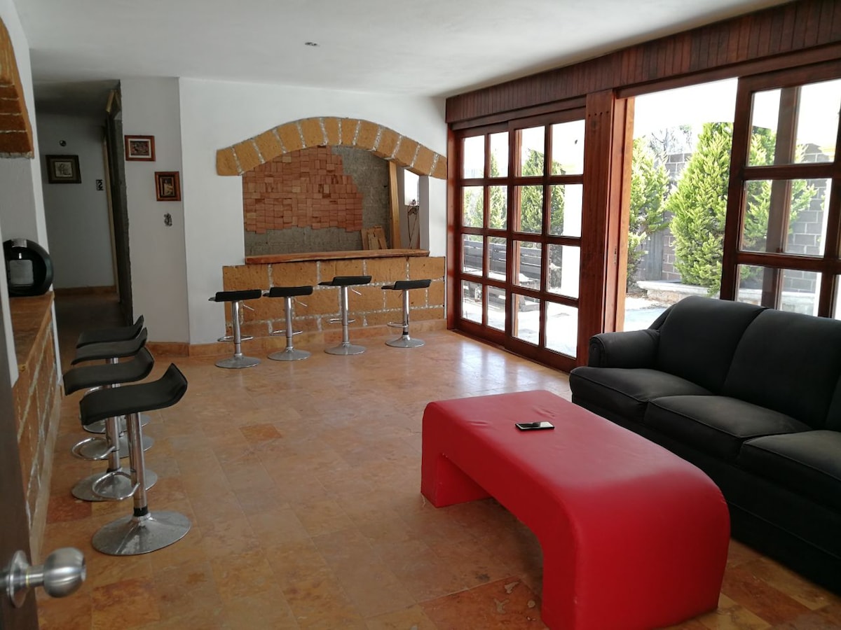 Disfruta en familia o amigos de esta hermosa y amplia propiedad con una área de 1900 m2 un gran jardín, área de parrilla, área estacionamiento y salón para eventos (preguntar condiciones). La casa tiene una amplia sala y comedor, cuenta con internet de alta velocidad, Netflix, etc. A solo 10 min de Sn Andrés y Sn Pedro Cholula. Si se requiere hospedar 4 personas adicionales, se puede negociar una casita en la misma propiedad con recámara, baño, sala con sofá y comedor ( negociación aparte)