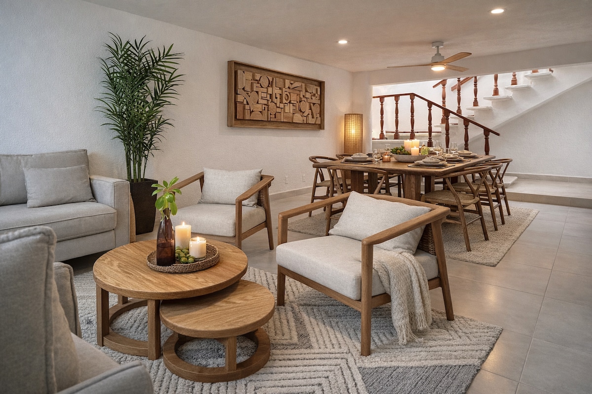 Uživajte v Cancunu v mojem dvosobnem dvoetažnem predelanem stanovanju v bližini plaže v enem najlepših območij v Cancunu v bližini novih restavracij, barov, kavarn, igralnic in nakupovalnega središča, ki je od plaže Las Perlas prav tako blizu letališča. Stanovanje je zelo udobno, dobro opremljeno in ima vse, kar potrebujete za vtis. Idealen je za pare, skupine prijateljev ali družine. Povsod ima hiter Wi-Fi, pametne televizorje in klimatsko napravo, popolnoma opremljeno kuhinjo in parkirišče za 2 avtomobila