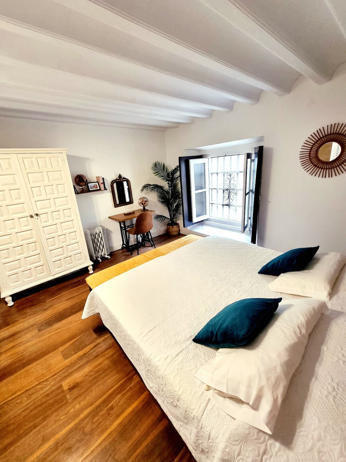 Svetlo nebo s čudovitimi znamenitostmi osrednje tržnice, glavne pošte in katedrale. Odlična vesela in navdihujoča lokacija, polna odličnih tapas barov in izjemnih restavracij, le 9 minut hoje do edinstvene plaže Caleta. Odlična lokacija za uživanje v karnevalu z balkonov (Coros in Chirigotas"se sprehodite po ulici in se ustavite, da pojete pred hišnimi vrati). Cádiz + Central Market + Cathedral + Caleta Beach + Tapas + Full-Natural-Light = Tradition, Culture & Joy.