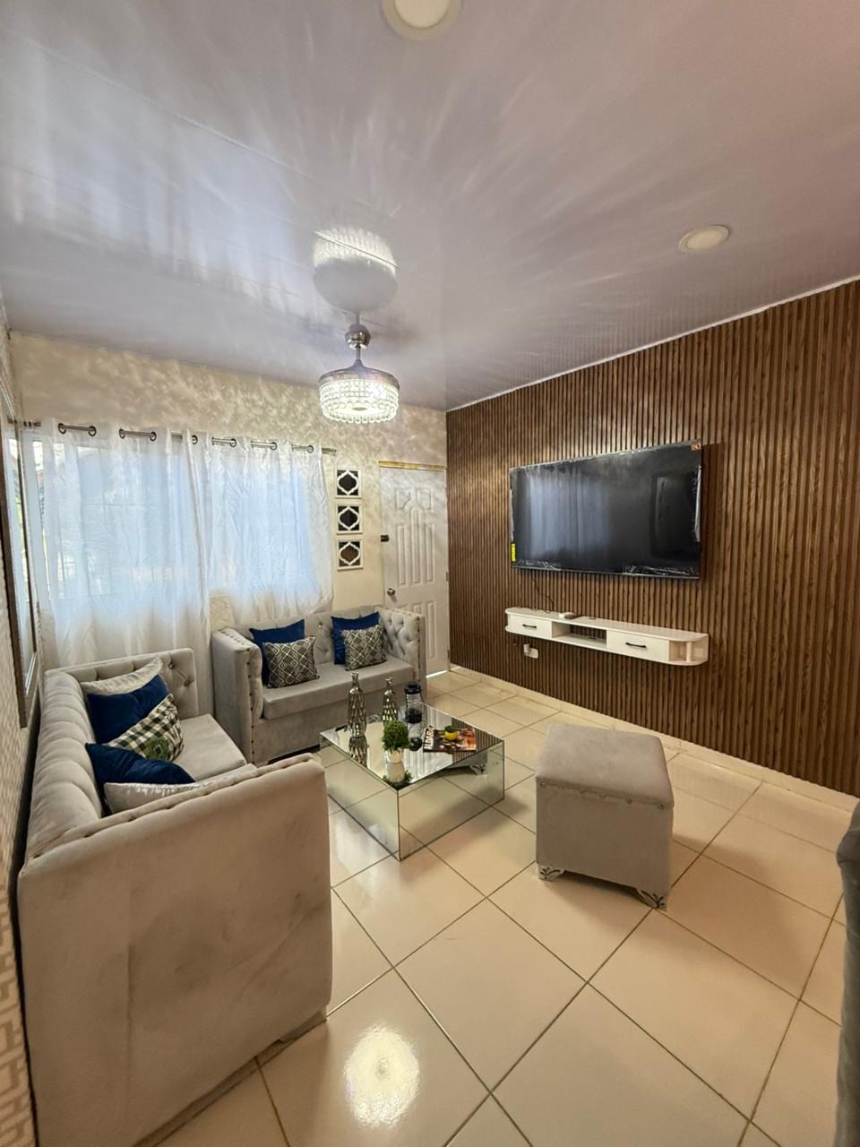 Relájate en este espacio tan tranquilo y elegante. Y una frescura y vista excepcional, si busca un lugar tranquilo para descansar en familia este es el ideal. Este hermoso apartamento está ubicado en un 3er nivel consta de tres habitaciones cada una con su aire acondicionado y abanicos inteligentes 2 baños, cocina completamente equipada, estamos a 5 minutos del aeropuerto Gregorio Luperon y a 10 minutos de la playa de Sosua y 15 minutos a Santa Fe.