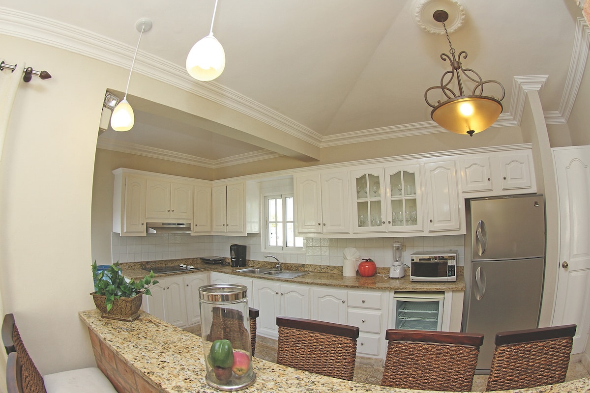 Pobegnite v ta NOVI luksuzni in moderni apartma ob plaži na Playa Dorada Puerto Plata, Dominikanska republika. Vse, kar je potrebno za prijetno, mirno in varno bivanje; z neposrednim dostopom do plaže, dvojne terase, ki vas vodi do bazena, gazeba in telovadnice; dostopni vrhunski golf kampus, restavracije v kompleksu, v bližini nakupovalnega središča, mednarodnega letališča in številnih znamenitosti, kot so vodni park, žičnice, zgodovinski center, nočni klubi in še več.