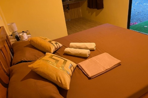 Naša dvonadstropna hiša za goste ima 2 enoti, vsaka s površino 20 m2 in zasebno kopalnico. 1/F lahko sprejme 4 do 5 gostov, medtem ko je 2/F zasnovan za največ 6 gostov. Vsaka enota je opremljena z osnovnimi potrebščinami za udobno bivanje, vključno s klimatsko napravo ter vročimi in hladnimi prhami. 1/F vključuje tudi avtomat za vodo in pametno televizijo. Prizadevamo si, da bi ponudili cenovno ugodne nastanitve, hkrati pa zagotavljamo prijetno izkušnjo, ki daje prednost udobju in zadovoljstvu gostov.