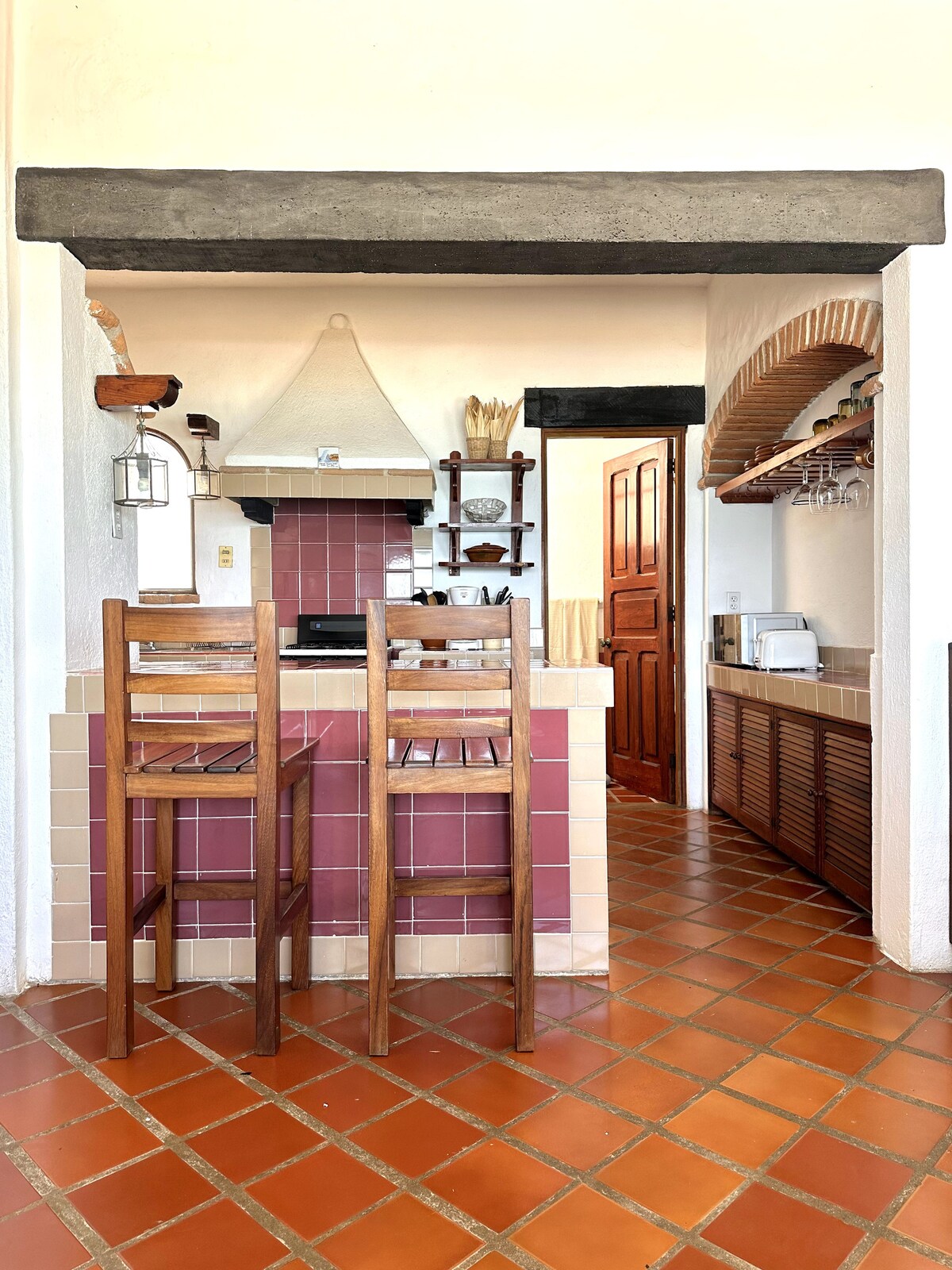 Potopite se v zasebni osvežujoč bazen in občudujte panoramski razgled na zaliv. Ta vila odraža mehiško prefinjenost starega sveta z izpostavljenimi lesenimi tramovi, ročno poslikanimi ploščicami in kolonialnimi starinami skupaj s sodobno opremo. Naša vila se nahaja visoko na gorskem grebenu s panoramskim razgledom na zaliv Banderas, Puerto Vallarta na severu in Los Arcos na jugu. Lokacija in zbirka vil sta na splošno priznana kot ena najboljših možnosti, ki jih lahko ponudite zaradi neprimerljive lokacije in čudovitih arhitekturnih podrobnosti naše enklave vil. To je avtentična obalna Mehika - vse sodobne razkošje v osupljivem okolju. To je naš raj in dom, ki je daleč od doma, zato smo zelo ponosni, da ga lahko delimo z gosti. Vila je vaša! Od spredaj do zadnje in od vrha do dna! Vedno sem vam na voljo po e-pošti. Na voljo je tudi upravitelj nepremičnin v PV, gospodinja, vrtnarja/bazenskega fanta in redne vzdrževalne storitve. Zato lahko naše lokalno osebje običajno hitro reši vsako težavo, ki se pojavi. Naša služkinja čisti dvakrat tedensko kot del naše cene, storitev bazena/vrta poteka vsak drugi dan, zato imajo gostje običajno nekoga, ki jim bo pomagal in se z njim pogovarjal, na kakršenkoli potreben način. Naše osebje je z nami že vrsto let in je precej usposobljeno in izkušeno, da služi našim gostom. Ta vila se nahaja na južni obali Puerto Vallarta, ki leži med gorami, prekritimi z bujno džunglo poleg zaliva Banderas. To je vrhunsko območje, polno neverjetne narave in razkošnih prenočišč. Nekatere od najboljših plaž so tik pred vrati. Naša osamljena in ekskluzivna ograjena vila je le nekaj trenutkov oddaljena od očarljive in zgodovinske romantične cone Puerto Vallarta, le nekaj minut od mesta in le deset milj od letališča Puerto Vallarta. Taksiji so na voljo in za 7 USD ste v mestu v desetih minutah. Obalni cestni avtobus se ustavi pred našo enklavo vile vsakih 15 minut, za 0,50 USD pa ste lahko v mestu v 10 minutah!! Zasebno parkirišče je vključeno. Vile imajo varnost v sklopu prenočišča vsak dan od 19.00 do 7.00. Vse težave ali vprašanja, ki se pojavijo zvečer, lahko reši naše varnostno osebje. Za družine z majhnimi otroki imamo otroške posteljice, deske za boogie, brisače za plažo in drugo opremo, ki je potrebna za goste, ki imajo radi plažo!