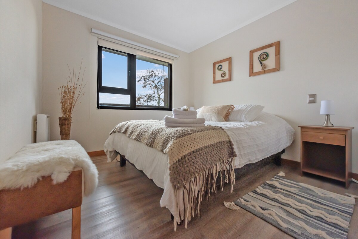 Spektakularno stanovanje z najboljšim razgledom na jezero Llanquihue. Gre za novo, sodobno in ekskluzivno bivališče. S sobo in dnevno sobo, jedilnico in popolnoma opremljeno kuhinjo. Vse je v mislih, da boste imeli najboljše bivanje in najboljšo opremo. Nepremagljiva lokacija le nekaj korakov od obale plaže Lake Llanquihue. S čudovitim razgledom na vulkana »Osorno in Calbuco«. Zelo mirno in varno stanovanje.