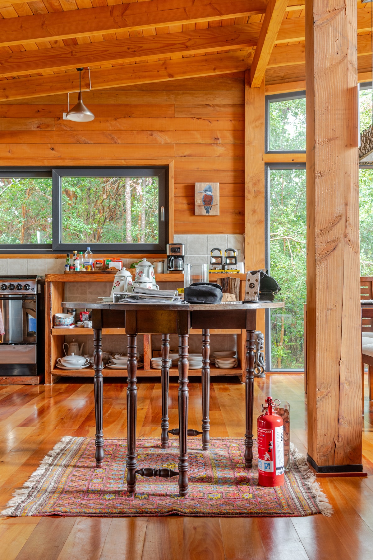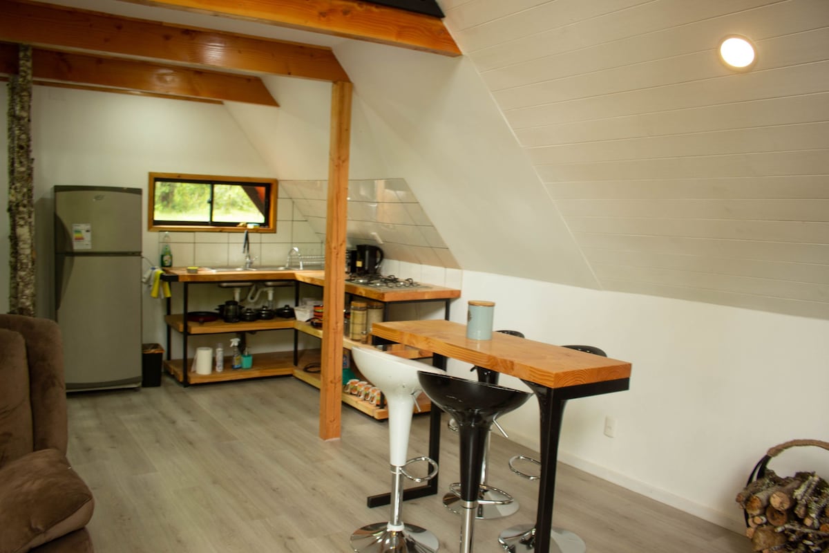 Čudovita alpska koča, ki se skriva v gozdu 45 minut (32 km) od kraja Pucón, je zasnovana tako, da vam omogoča, da se odklopite in uživate v preprostosti življenja. Tišina, ptičje petje, avtohtona drevesa, sonce in dež, ki pada z grebena, z odličnim brezžičnim internetom. Uporabljamo običajno elektriko in vključujemo obnovljive vire energije, da bi bili bolj ozaveščeni glede planeta. Ogrevanje s pečjo na pelete in pečjo na drva za tiste, ki cenijo preprosto in ozaveščeno življenje. Če imate raje gozd kot razkošje mesta, je to pravi kraj za vas!