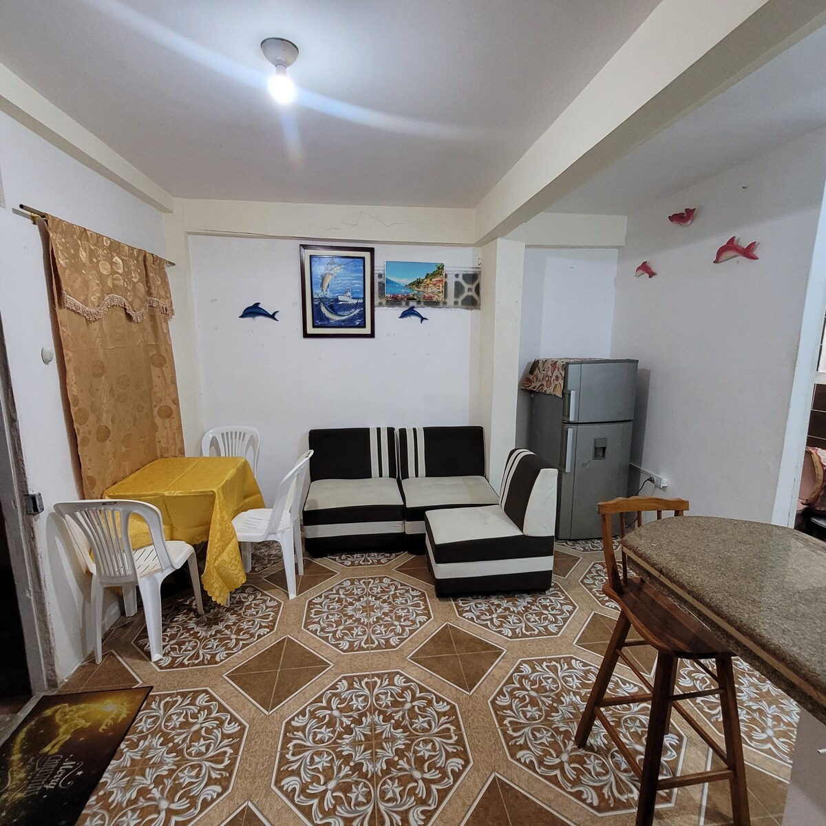 Uživajte v sodobni in udobni nastanitvi, le 2 minuti hoje do plaže. Idealno za počitek kot družina ali prijatelji. 📍 Blizu: Nakupovanje na plaži (15 min) Plaža Delfín (10 min) Varadero in Posorja (7 min) Puerto El Morro (26 minut) Vključuje 1 spalnico, kopalnico z WC-jem, klimatsko napravo, TV, Wi-Fi, parkirišče in non stop varnost. Mir in udobje ob morju!