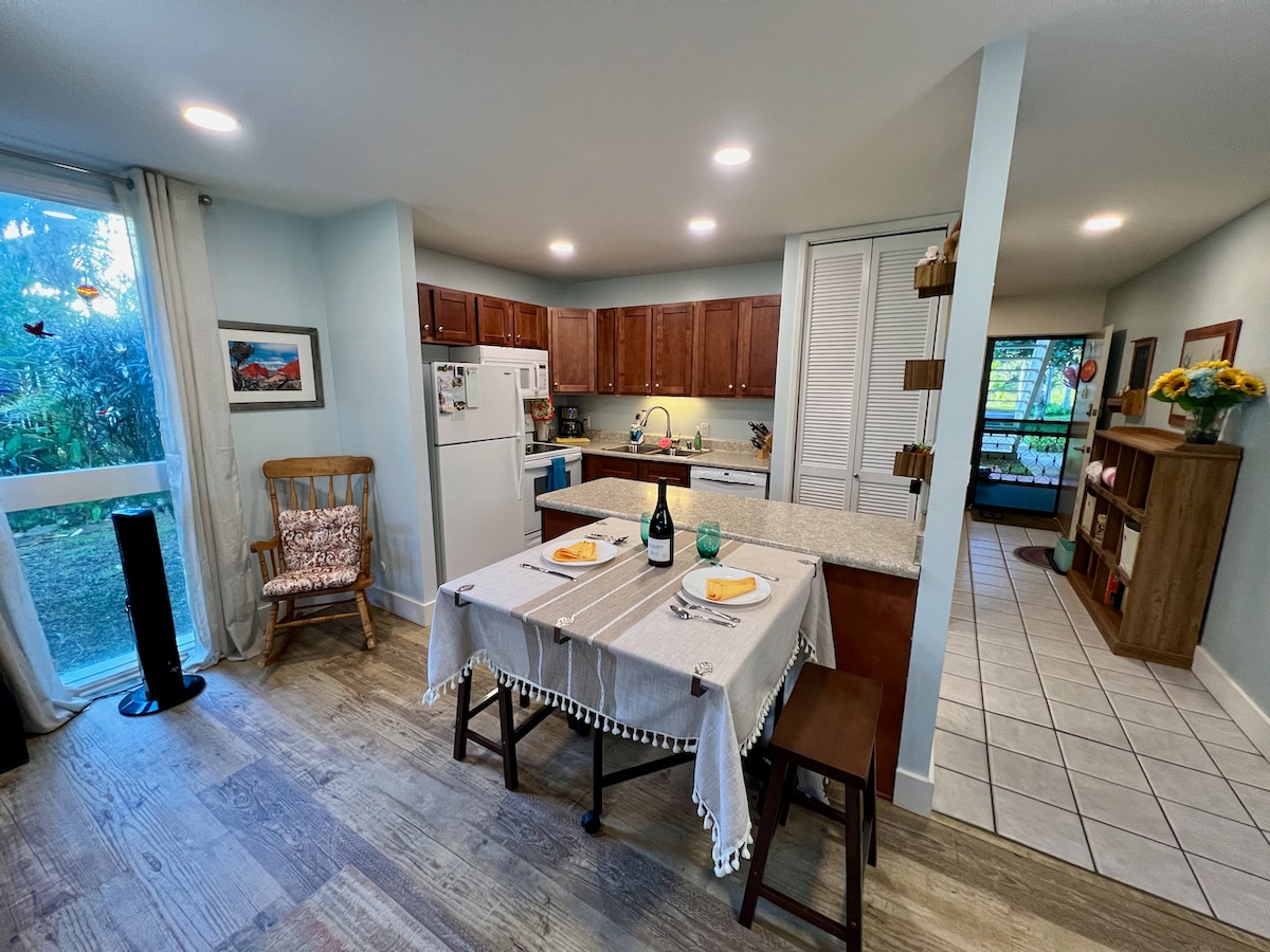 Uživajte v neverjetni izkušnji bivanja v Turtle Bayu brez cen letovišča! Naše stanovanje ima vso opremo, ki jo potrebujete (popolnoma opremljena kuhinja, udobna zakonska postelja s klimatsko napravo, pralni in sušilni stroj). Uživajte v dveh ogrevanih bazenih, teniških igriščih, igriščih s kumaricami in žarom na oglje. Nahajamo se le 5 minut hoje od plaže. Nahajamo se v pritličju s čudovitim lanaijem, kjer lahko uživate v sproščujoči skodelici kave, medtem ko lahko otroci prosto tečejo naokrog!