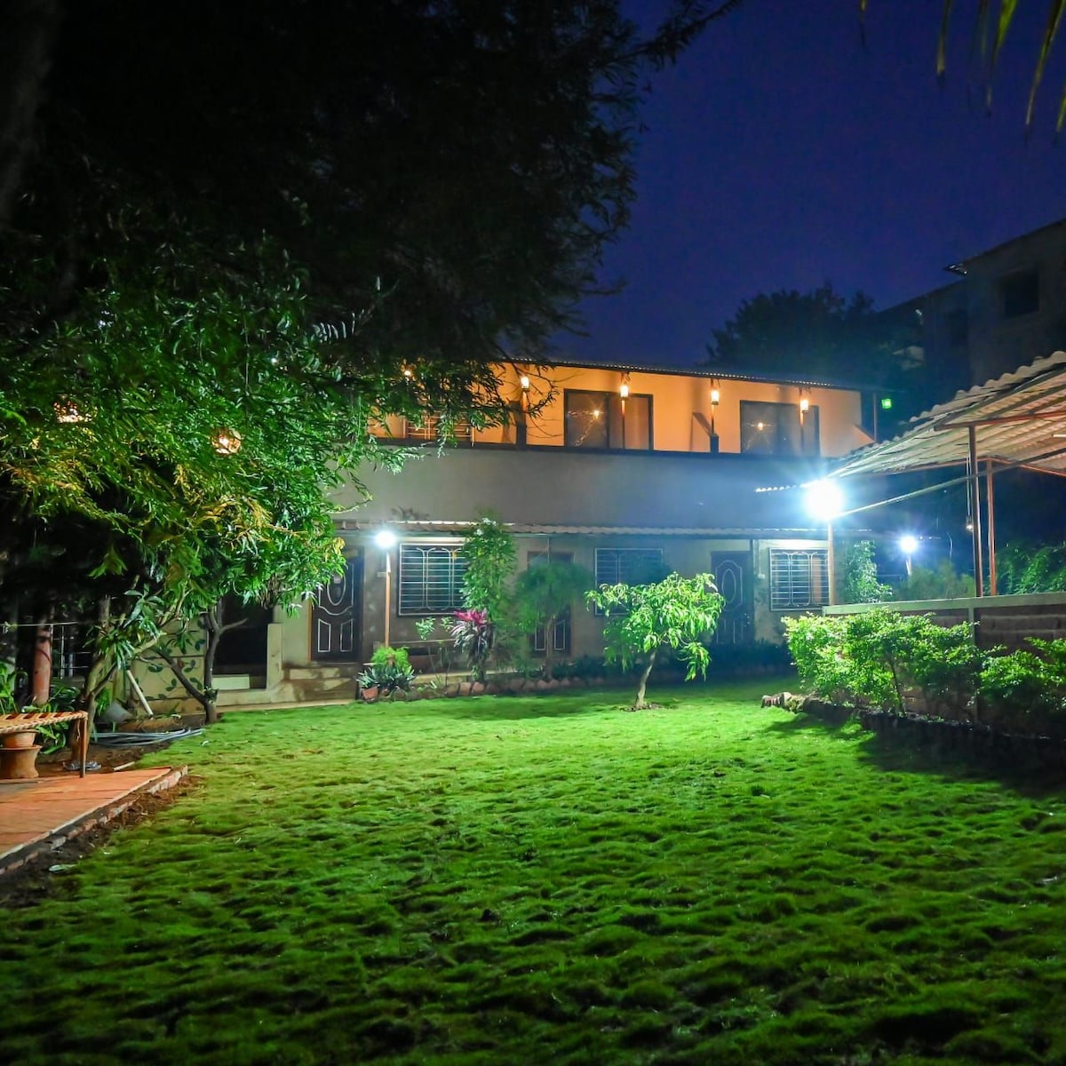 Sprostite se v tem edinstvenem in mirnem oddihu. Barve v vili, ki ležijo v zelenju in se nahajajo v središču mesta, izžarevajo mir in tišino z vetričem svežine. Pripravili smo zunanjo trato in teraso, da boste lahko uživali v sproščenih večerih ob hladnem pivu ob zasebnem bazenu. Upamo, da naše prenočišče izžareva enako ljubezen, kot smo jo vložili, zaradi česar so vaše počitnice srečne in nepozabne. Vila se nahaja na cesti Wadgaon Shinde v Lohegaonu, zaradi česar je zelo priročna.