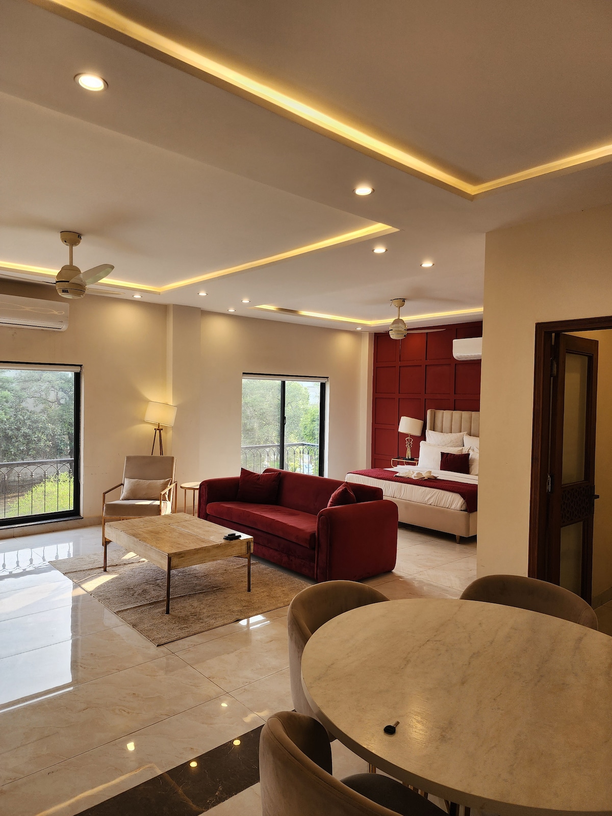 Stay at one of Islamabad’s most prestigious location -an exclusive, luxury 3-bedroom private unit set on a grand 2 Kanal residence right on Main Margalla Road, F-8/2. This address is truly unmatched, a rare gem that offers both convenience & prestige. Enjoy your own green private gardens, perfect for gatherings, morning coffee or unwinding in serene setting. With spacious surroundings & elegant, upscale interiors, this stay blends comfort, luxury, & the very best location Islamabad has to offer.