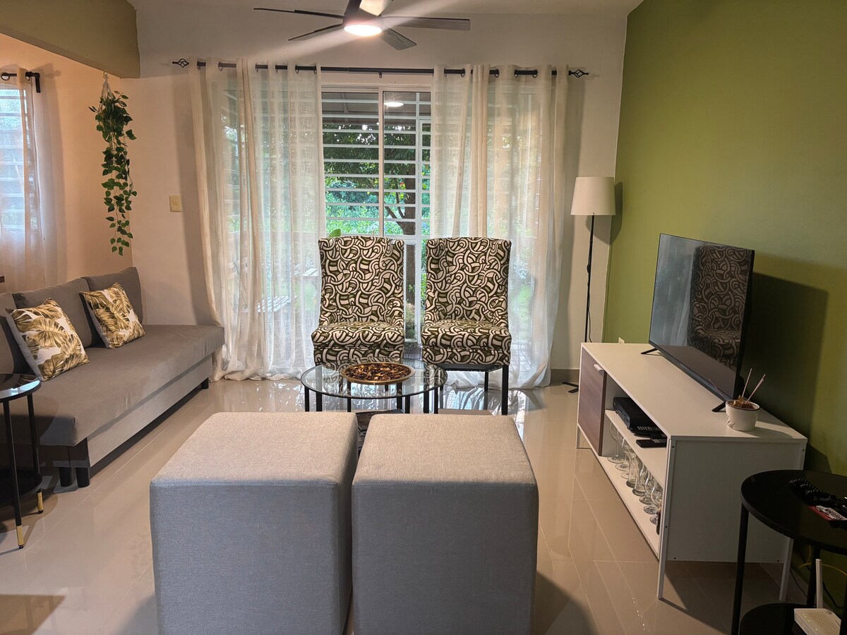 Popoln oddih v Punta Cani Uživajte v tem sodobnem obalnem stanovanju v osrčju Punta Cane: 📍 Glavna lokacija: 5 minut od letališča in Supermercado Nacional. 4 minute od plaže Juanillo in 10 minut od središča mesta. 🏡 Oprema: Sprejme 5 gostov (1 zakonska postelja + raztegljiv kavč). Popolnoma opremljena kuhinja, hiter Wi-Fi in 2 pametna televizorja. 🌊 Dodatki: bazen, parkirišče in dvigalo. ⭐ Mirno območje z razpoložljivostjo gostitelja non stop. ⭐ Izjemna storitev. Rezervirajte zdaj in izkusite raj! 🌴