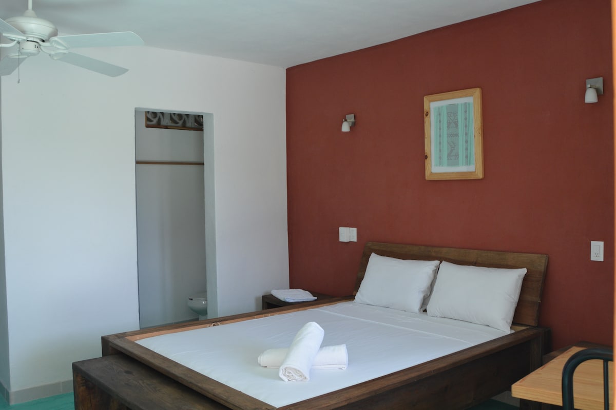 Koča se nahaja v drugem nadstropju z 🚾 zasebno in 🚿 skupno prho ZUNAJ SOBE, s pogledom na vrt, z zakonsko posteljo z mrežo proti komarjem, brezplačnim brezžičnim internetom Starlink, ventilatorjem, sefom in skrbno vsakodnevno storitvijo čiščenja. Posada México – hotel, restavracija, picerija in bar, ki se nahaja tik ob plaži.