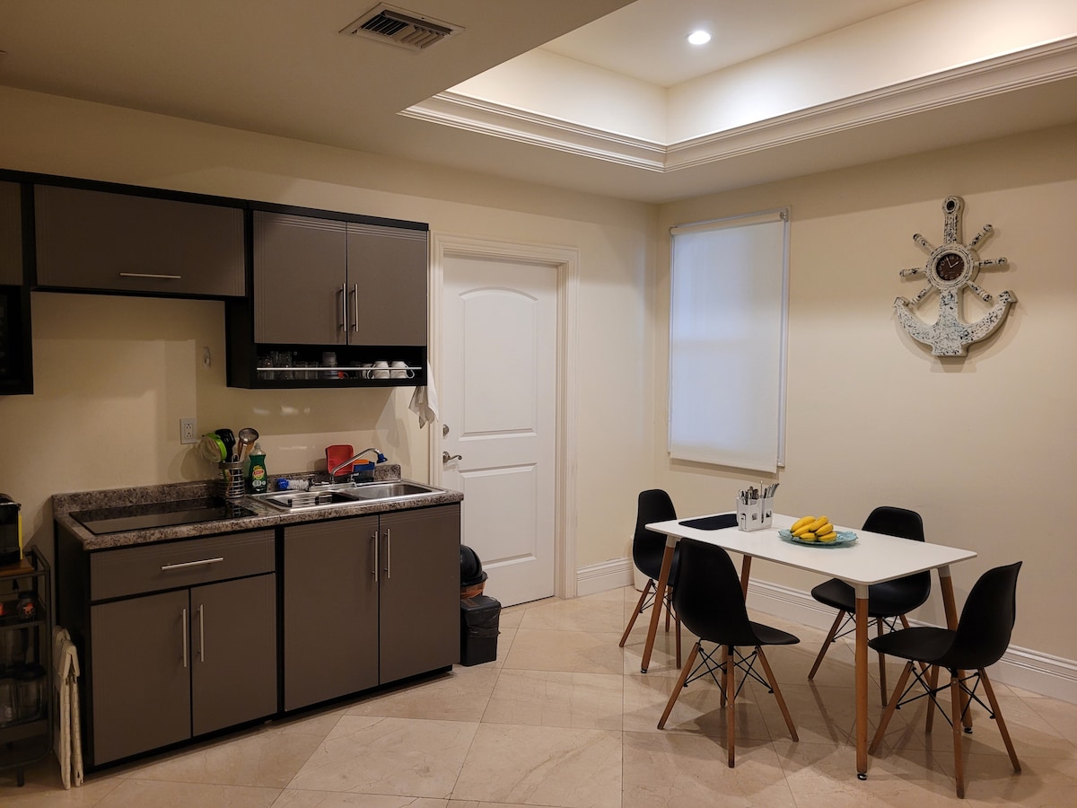 Perfect for beach and nature lovers looking looking for a quiet getaway! One of the best private locations on the island, with direct access to a sandy beach where you can enjoy water sports or simply relax on the shore. Just a 5 minute drive to Cozumel’s downtown area. This newly remodeled suite has everything you need for a comfortable stay including: an open outdoor patio, a large studio, private bathroom, air conditioning, smart TV, Wi-Fi and a kitchenette stocked with new appliances.