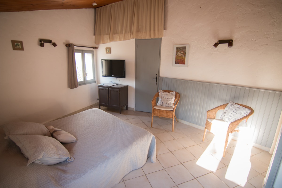 Naša hiška na deželi je neodvisno celotno stanovanje v bližini stare kmečke hiše v Provansi sredi vinogradov in polj. Uživajte v pritličju z veliko spalnico z zakonsko posteljo, kuhinjo in kopalnico. Na voljo je tudi zunanja terasa pod starimi drevesi in velik vrt. Vse je zelo mirno in trgovine so v vasi, ki je oddaljena 0,5 milje. Koča je popoln kraj za bivanje in sprostitev ter dobro izhodišče za vse športne dejavnosti. Radi kolesarimo in lahko se družimo z gosti