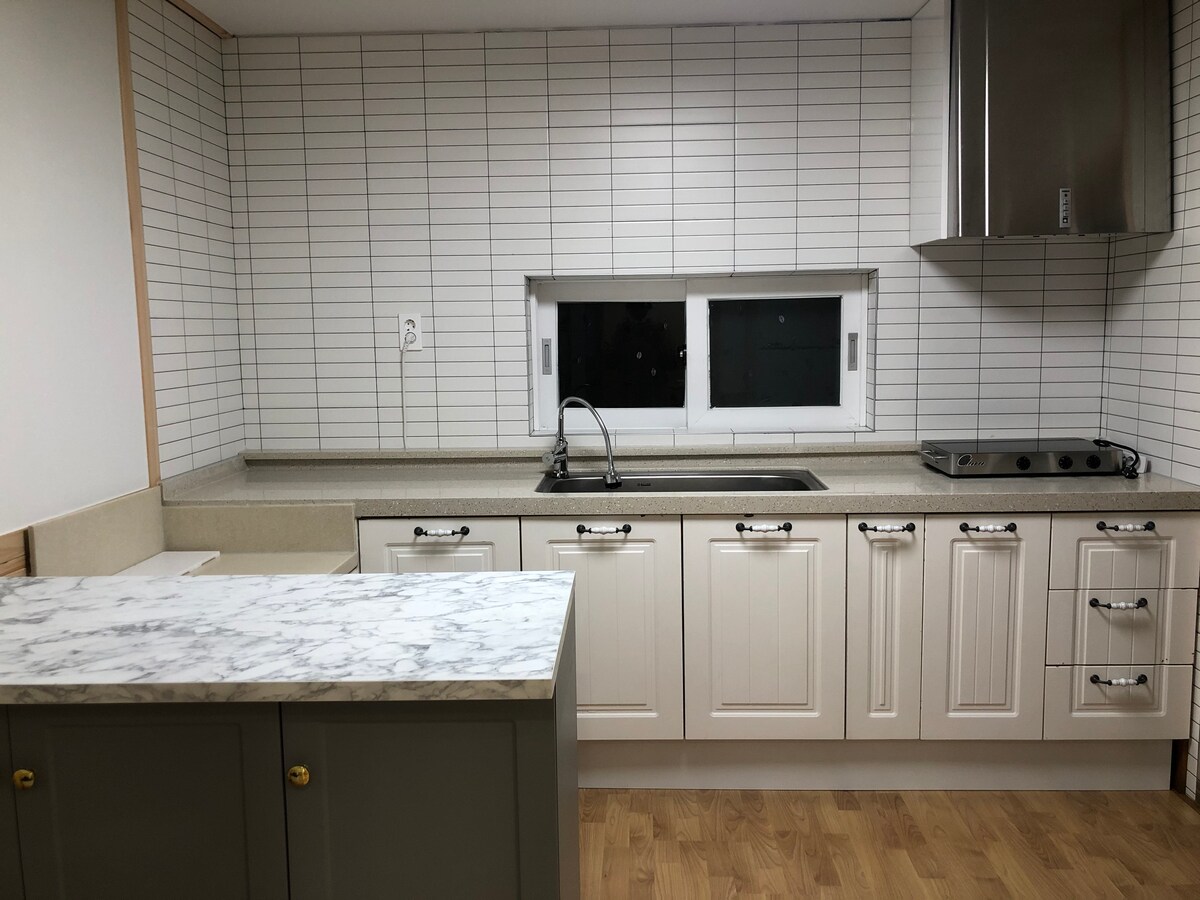 Pobegnite v našo mirno podeželsko hišo, ki se nahaja med polji mandarin Jejuja, ki je namenjena izključno eni skupini. Z zasebnim vhodom in dnevno sobo, ki se ponaša z visokim dvonadstropnim stropom, je idealen za 2-4 goste. Pozorni lastnik poskrbi za čistočo. Na priročni lokaciji 5 minut od mesta Namwon, kjer vas čakajo supermarketi in restavracije, ter del tečaja Olle Trail 5. Cena za 2 gosta; sprejme do 4 goste. Dodatna zložljiva posteljnina je na voljo za 20.000 KW z vnaprejšnjo rezervacijo.