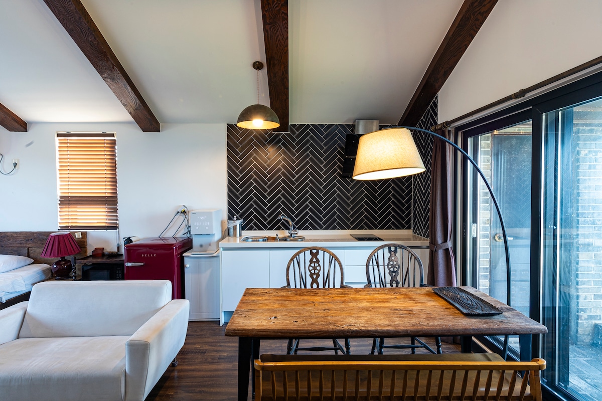 [The Bunsweet] »The barn« pomeni »skedenj«. Ob zvokih ptic in vetra v mirni vasi Jeju, ki se nahaja na vzhodni strani sredogorja in je del svetovne naravne dediščine, boste občutili pravi »počitek«☕️ Na voljo sta »savna« z vonjem breze in prostorna ter udobna »kopel na prostem«.🫖 V zasebnem zunanjem prostoru Sprostite se v topli masažni kadi z najdražjimi, družino in ljubljeno osebo Vzemite si odmor in delite zgodbe, ki jih še niste imeli časa povedati🥂 V zasebni hiši s 60 m2 in prostornem dvorišču s 330 m2 ali več Upamo, da boste uživali v romantičnem vzdušju, ki ga ustvarja čudovit vrt, ki ste ga ustvarili sami.🏡 [Oddaljenost od glavnih točk] – Hamdeok-ri 15 minut – Woljeong-ri: 15 minut. – Hallasan Seongpanak: 20 minut – 20 minut do gozdne ceste Saryeoni [Ponos apartmaja Durban] 1. Sredogorje, ki se nahaja v največjem gozdu Gotjawal na vzhodu otoka Jeju 2. Zasebna masažna kad v naravi☘ ️ 3. Kava s tremi mačkami v kavarni v skednju, ki je oddaljena 1 minuto 4. Prenočišče, ki ga skrbno gradi in upravlja gostiteljska družina🍶