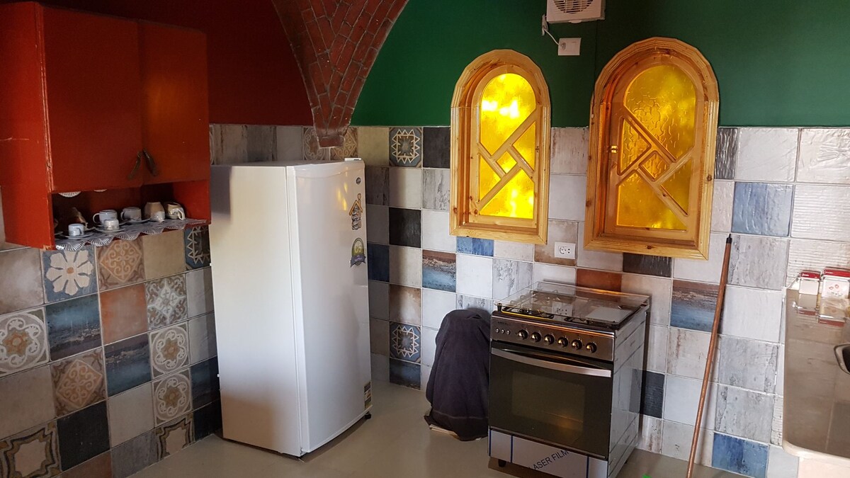 Villa built following Arabian architecture Egyptian / Moroccan style which includes high domed ceilings, large open spaces and beautiful arches which ensures villa is always nice and cool. Large balcony to use as you wish, RELAXING or outdoor DINING AREA. View of the Nile and Luxor temple. Villa comes with its own private garden, kitchenette IN THE GARDEN, in a very friendly and safe neighborhood. Member of the family always at hand and will do the best to make you happy