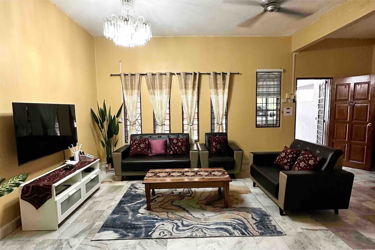 Nestled in Ipoh, Perak, on Jalan Wu Lean Teh Naša hiša za goste sprejme 14 gostov z dnevno sobo s klimatsko napravo, 4 klimatizirane sobe (6 zakonskih postelj, 2 enojni postelji), garažo za 3 avtomobile, notranje in zunanje jedilnice, grelnike vode, Wi-Fi, SmartTV, Netflix, TV škatlo, grelnik vode, indukcijski štedilnik, pralni stroj in opremo. Udobna in udobna počitniška hiša, ki se strateško nahaja le 1 minuto do gurmanskih žarišč, 6 minut od središča mesta Ipoh, 5 minut do stadiona Ipoh, 9 minut do letališča Ipoh, Tambun Lost World in Stesen KTM.