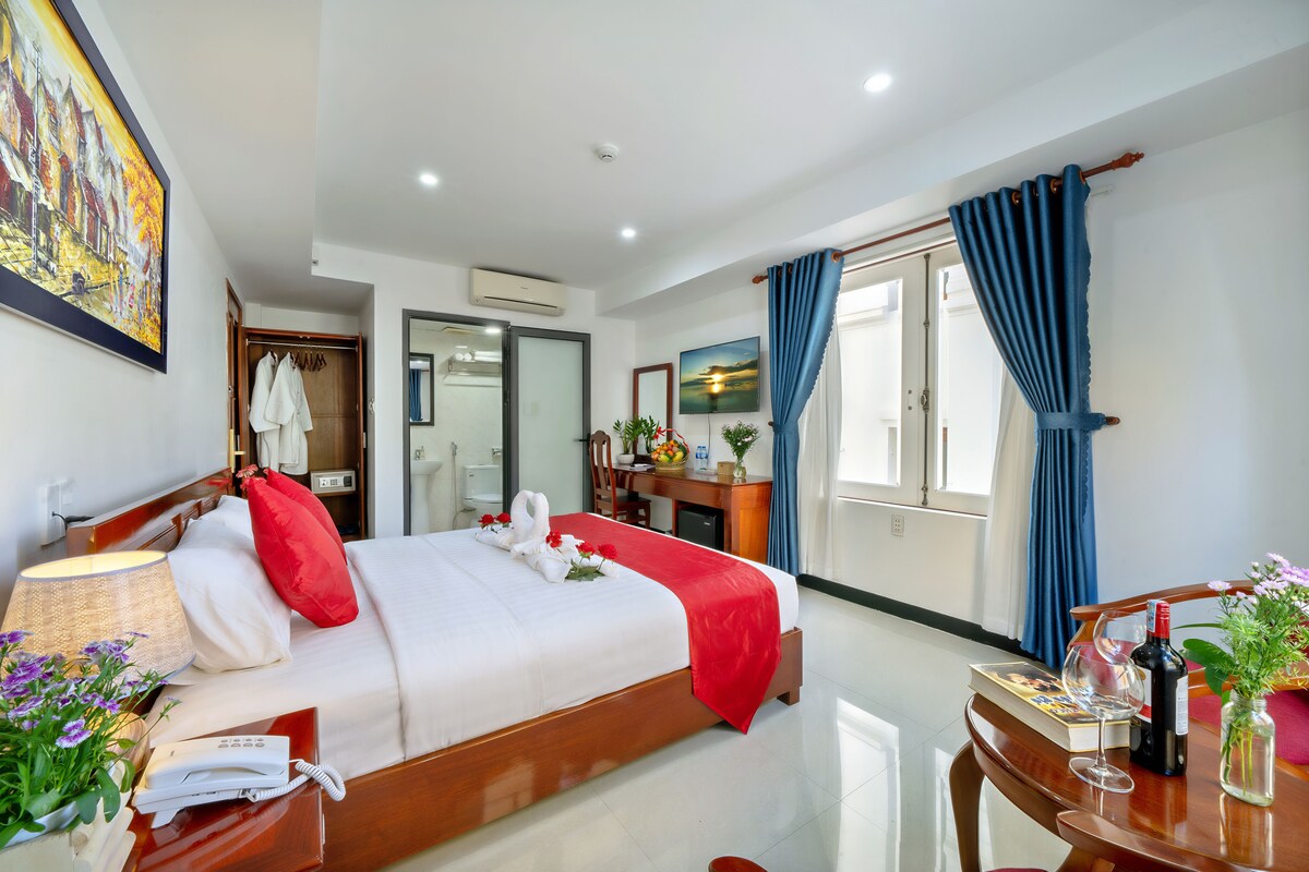 Udobna soba z oknom v luksuznem hotelu - 150 m od plaže My Khe - Plaža, ki jo je Forbes izglasoval kot najbolj privlačno na svetu - 2 km od Zmajevega mostu, mostu reke Han, ki se nahaja v najbolj obremenjenem turističnem območju Da Nanga - An Thuong, zato je blizu znanih zabavnih in jedilnih točk, kar je izjemno priročno za raziskovanje mesta Da Nang - Nahaja se na ulici, daleč od glavne ceste, zato je zelo tiho, da dobro spite. - Zunanji bazen in telovadnica v zgornjem nadstropju