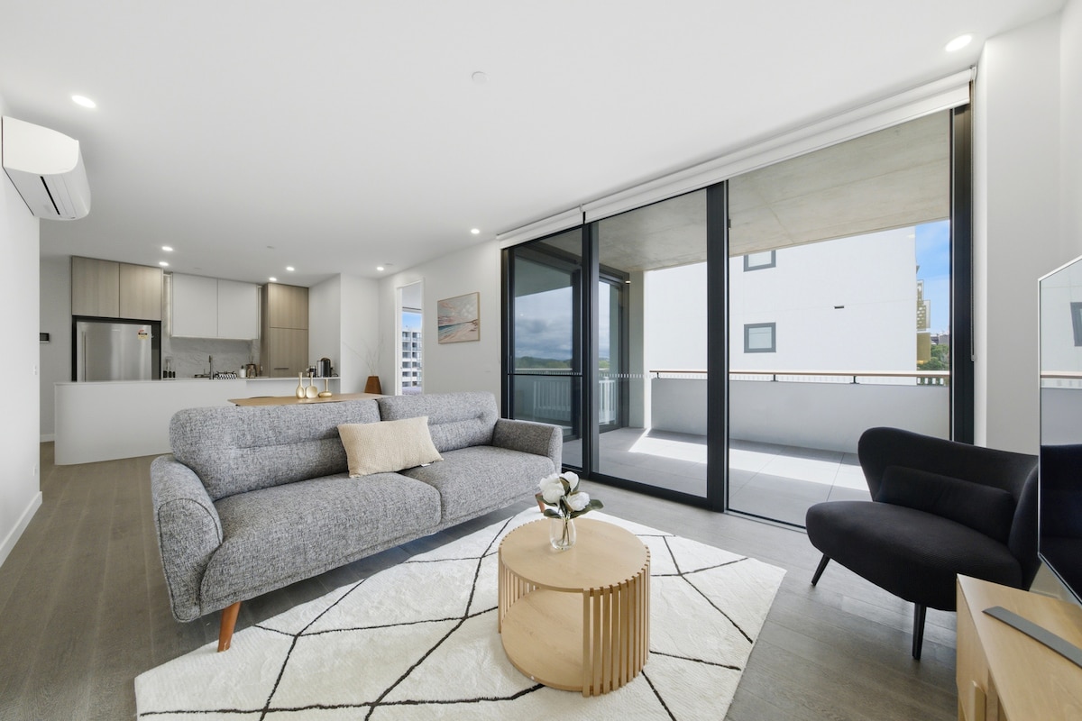 Bivajte v luksuznem stanovanju 2BR v zgornjem nadstropju v Dicksonu. Sprehodite se 100 metrov do lahke železnice, odpeljite se do mesta v nekaj minutah, nato pa se enostavno sprehodite ali odpeljite do vrat Floriade. Brezplačno parkiranje, hiter Wi-Fi, nastavitev za družine. • Odlična lokacija: 100 m do lahke železnice. Minutes to Dickson Chinatown, Braddon, City • Pogled na gore: svetlo bivališče odprtega tipa, jedilnica, kuhinja • VRT NA STREHI: panoramski pogled na Canberro, žar • +daljša bivanja