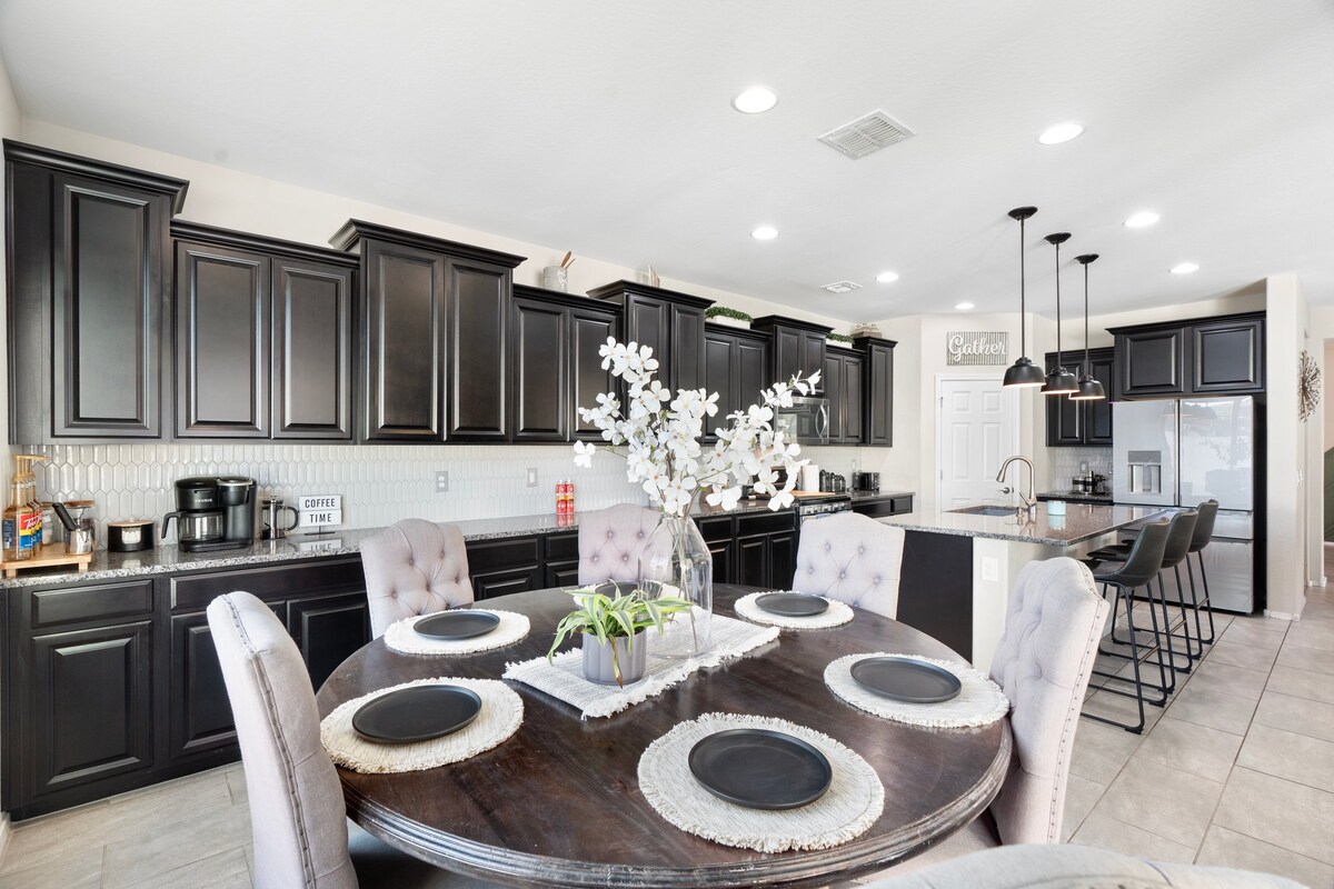 Experience Ultimate Vacation Vibes at our 5-bedroom modern home, complete with spa-like bathrooms, stylish loft with queen bed, backyard with a heated(add charge)pool with basketball hoop, bar area, and a garage with ping pong table and bikes. Located in a secure area with top restaurants, shopping, and entertainment just minutes away. Ideal for families or groups, our home offers the perfect balance of relaxation and entertainment ✔ Heated Pool ✔ Gazebo ✔ Luxurious Bathrooms Learn more below!