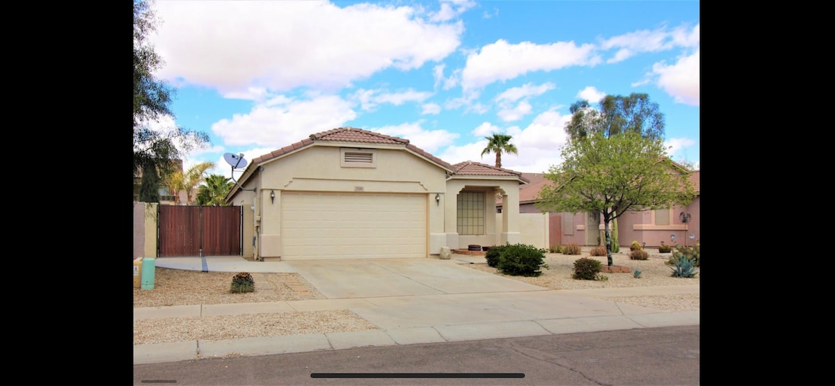Mirno enodružinsko prenočišče z dostopom do čudovite soseske Power Ranch. Skupni prostori, bazeni, nakupovanje, golf, pohodništvo, športni dogodki in vse, kar ponuja podzemna železnica Phoenix. Prenočišče se nahaja na lepi slepi ulici, tako da se lahko otroci igrajo zunaj ali na zaprtem, prostornem zasebnem dvorišču. Dovolj prostora za počitek v odprti kuhinji/družini/jedilnici ali za nekaj zasebnosti v eni od spalnic.