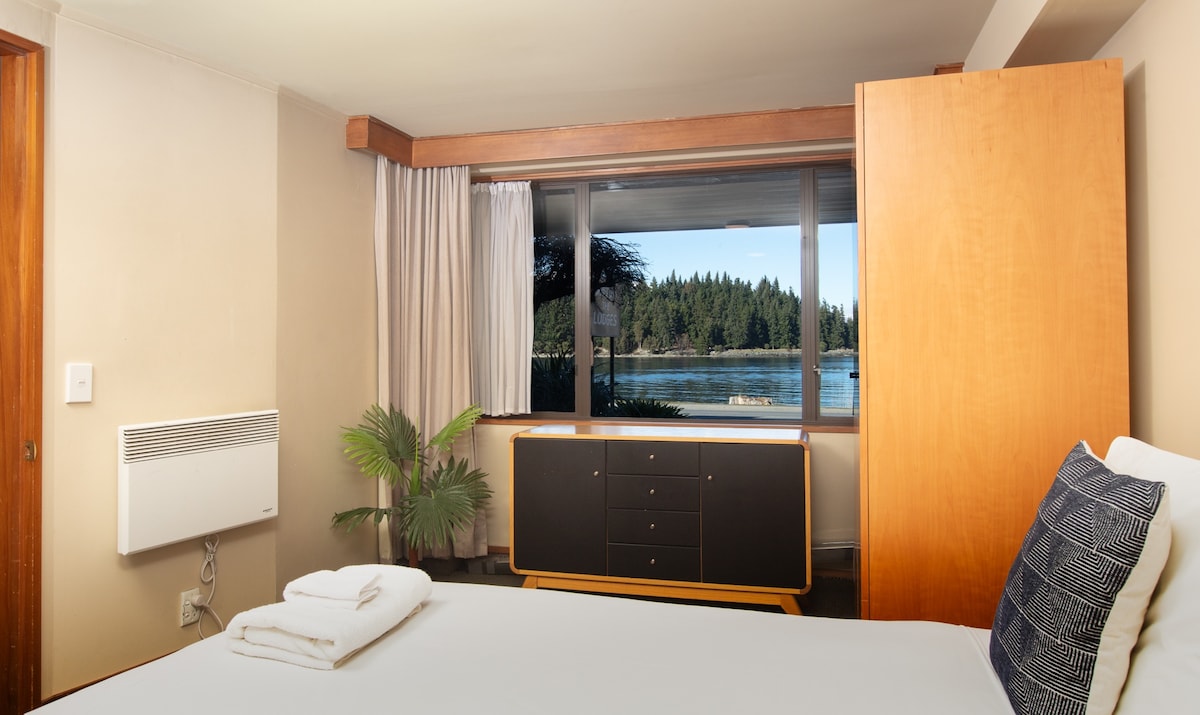 Naša garsonjera ob jezeru ponuja spektakularen razgled na veličastne gore in neprekinjen razgled na jezero ter je le nekaj minut stran od mednarodnega letališča Queenstown. Garsonjera ne nudi kuhinjskih pripomočkov, vendar smo prepričani, da bo bližina lokalnih kavarn, restavracij, butične pivovarne in prenočišč za s seboj, ki so vse dostopne peš, po vaših željah. Do vrhunskih restavracij, igrišč za golf in vinskih kleti je le kratka vožnja.