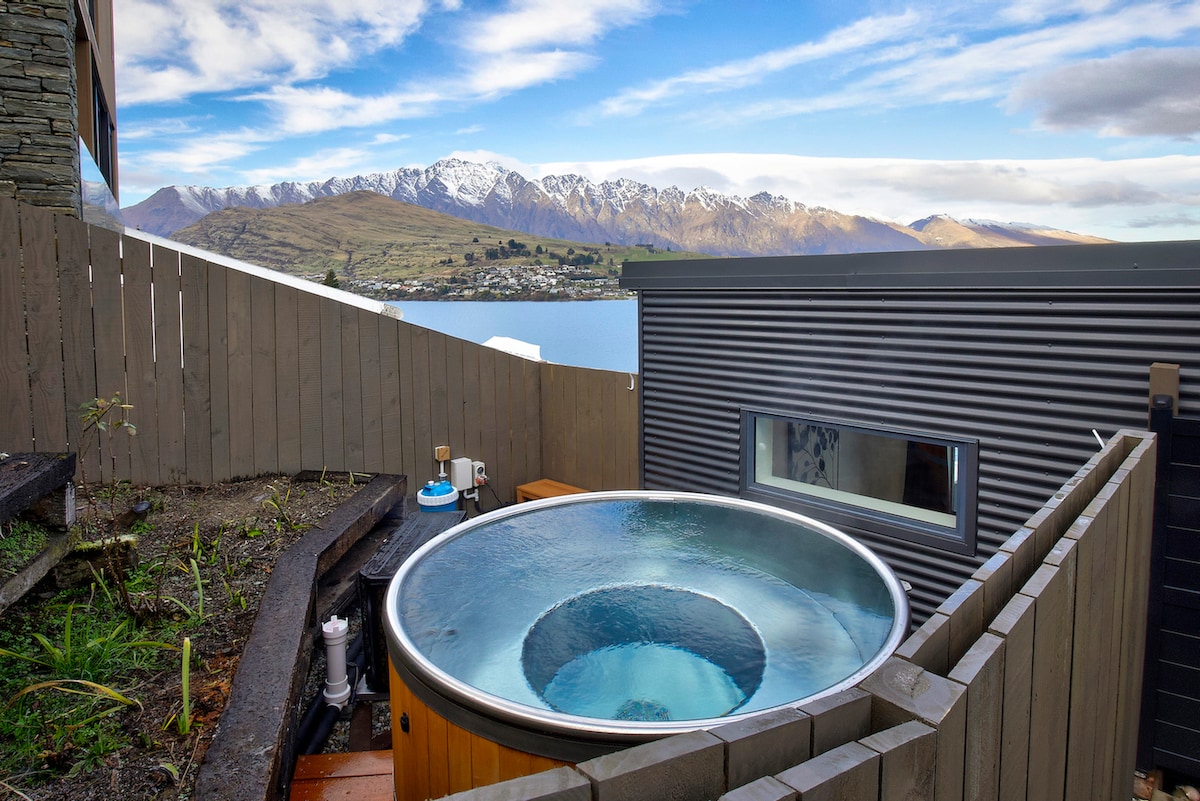 To na novo zgrajeno, vrhunsko prenočišče s sijočim talnim ogrevanjem se bo ovila okoli vas in vam omogočila, da se boste počutili toplo, sproščeno in pripravljeno za vse, kar ponuja Queenstown. Lezite nazaj in uživajte v čudovitem razgledu na gorovje Remarkables z balkona v masažnem bazenu, dnevni sobi, glavni spalnici ali pa se sprostite na zunanjem pohištvu. Bazen s slano vodo sprejme 5 oseb in je vedno pripravljen na namakanje. Namestitev je bleščeče čista in vključuje kakovostno posteljnino s 5 zvezdicami in razgledom, ki je osupljiv.
