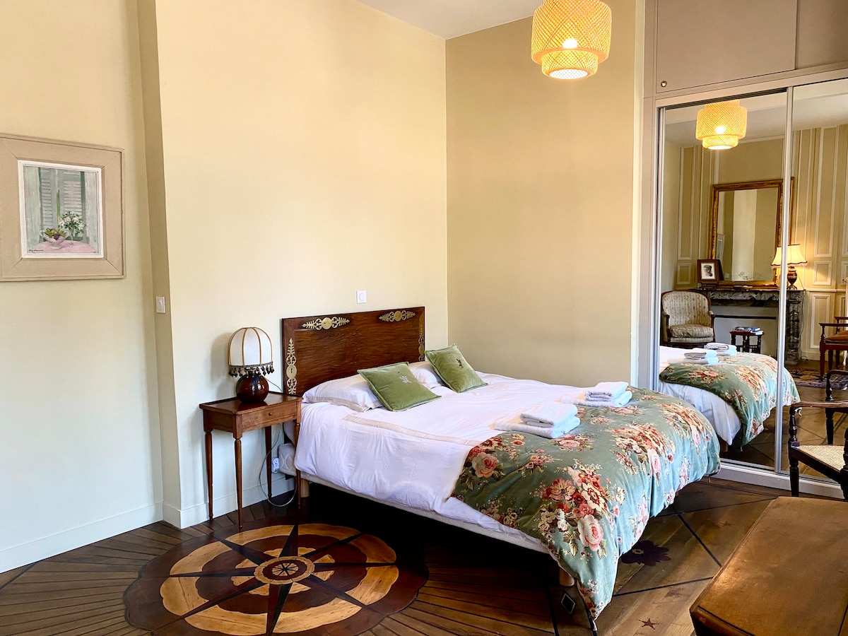 V okolju z zelenjem in mirom veličastnega gradu iz 15. stoletja, ki se nahaja na vhodu v naše čudovito srednjeveško mesto Dinan, boste bivali v 54 m2 mansardnem stanovanju v pritličju glavne stavbe. Odkrili boste njegov veličasten monumentalni kamin in zaljubili se boste v to avtentično stavbo, polno zgodovine, z vsem sodobnim udobjem v osrčju čudovitega parka s tremi hektarji z ribnikom, ki je le 15 minut hoje od zgodovinskega središča ali 3 minute z brezplačnim avtobusom.