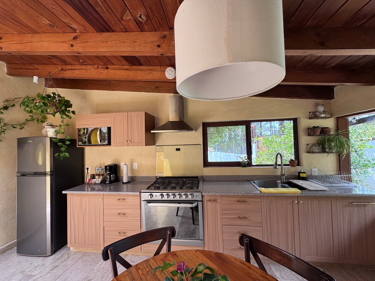 Zbudite se med drevesi in naravno svetlobo v Casita Woodsu, toplem in elegantnem zatočišču sredi gozda Valle de Bravo. Idealno za izklop, branje ob ognjišču ali uživanje v kavi na terasi, obdani z zelenico. Minute od jezera in središča mesta, vendar dovolj daleč, da občutite popoln mir. Idealno za romantične izlete ali ustvarjalno prekinitev v naravi.