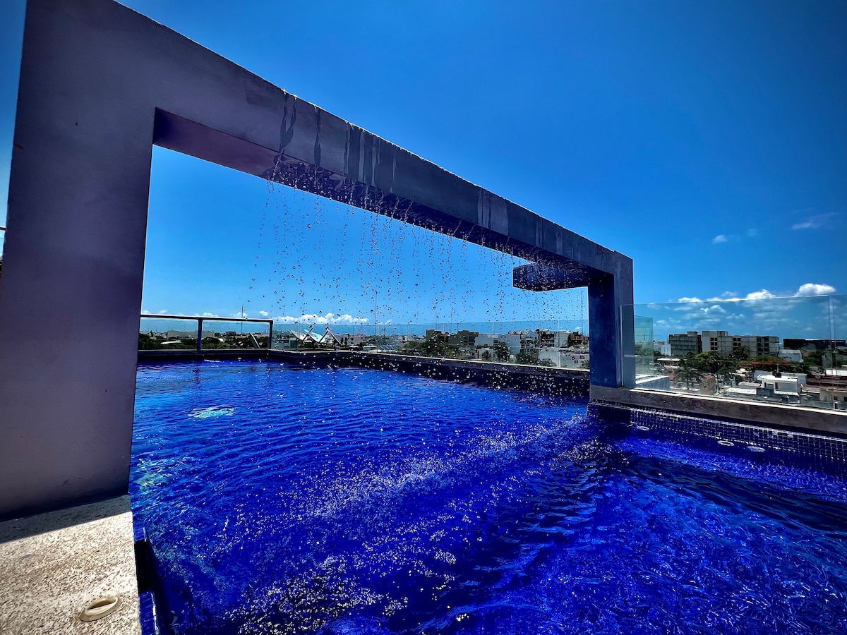 Uživajte v elegantni izkušnji v tej nastanitvi v osrčju Playa del Carmen, 5. avgust, kjer boste našli vse, kar potrebujete, saj je najbolj turistično območje, ima najboljše restavracije, nakupovalne centre, La Quinta Alegría, calle corazón in še več ... vse peš, Plaža je oddaljena le približno 300 metrov Dostop do stavbe je prek prostornega in čudovitega sprejema z Wi-Fi-jem in klimatsko napravo, 24-urno stražo, električnimi vrati s ključem za dostop do dvigala