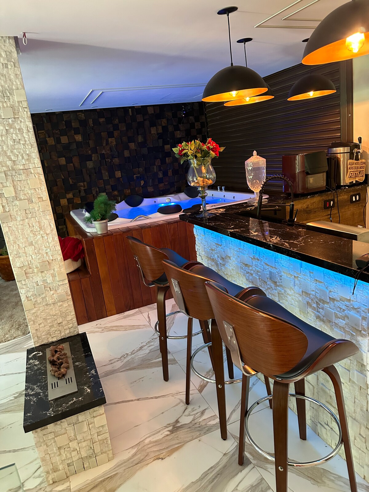 Zasebni apartma za pare v Granja Viani, idealen za tiste, ki iščejo počitek, naravo in mir v bližini São Paula. Romantično zatočišče sredi zelenja z žarom in prijetnim vzdušjem za konec tedna v dvoje. Tukaj ustvarjate posebne spomine s tistimi, ki jih imate radi, v okolju, ki je zasnovano tako, da se upočasnite, ponovno povežete s svojo bistvo in napolnite baterije za vsakdanje življenje. Zunanji prostor si delite z drugo suito v istem prostoru, zato je okolje tiho in spoštljivo.