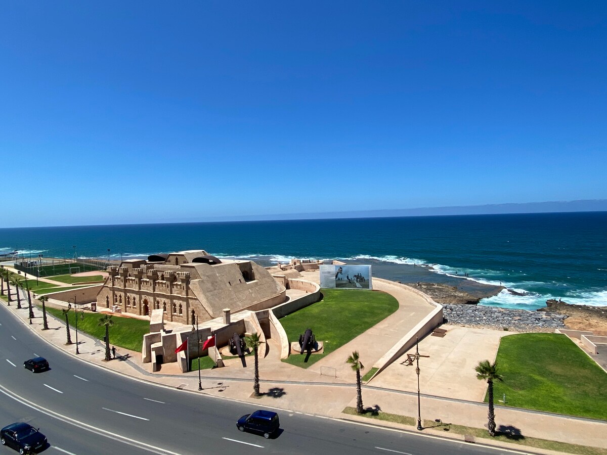 Razkošje, udobje in razgled . - Popolnoma prenovljeno stanovanje na vrhu stolpa ,edinstveno, idealno v središču mesta Rabat, v bližini vseh znamenitosti in opreme, kar olajša načrtovanje obiska. - Osupljiv panoramski razgled, vreden mojstrovine , ki se razteza nad starodavno Medino, Atlantik, reko Abu Regreg, Kasbah Oudayas in več simboličnih spomenikov. - Celotno stanovanje ima fascinanten razgled podnevi in ponoči.