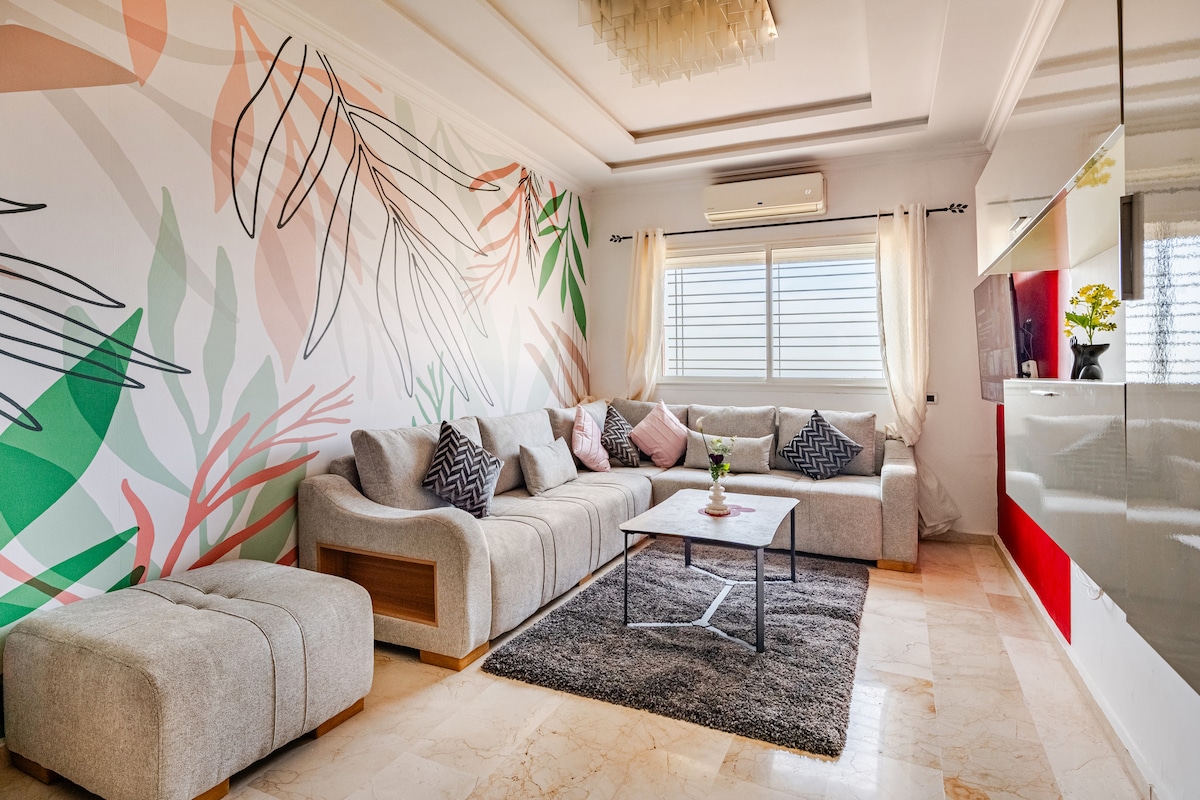 Udoben, razkošen in sproščujoč dom v Rabatu za popotnike, ki cenijo udobje, okrašen z okusom in pozornostjo do podrobnosti v mirni in varni soseski. Nahaja se tik pred oceanom, v bližini trgovin in restavracij. To je tudi samo 10 minut hoje od "Kasbah", "Old Medina", in plaža Rabat. Ta apartma je najboljša izbira za pare ali prijatelje, ki potujejo v Rabat. Vse smo določili, da se med bivanjem v Rabatu počutite kot doma. AC + VISOKOHITROSTNI WIFI + NETFLIX