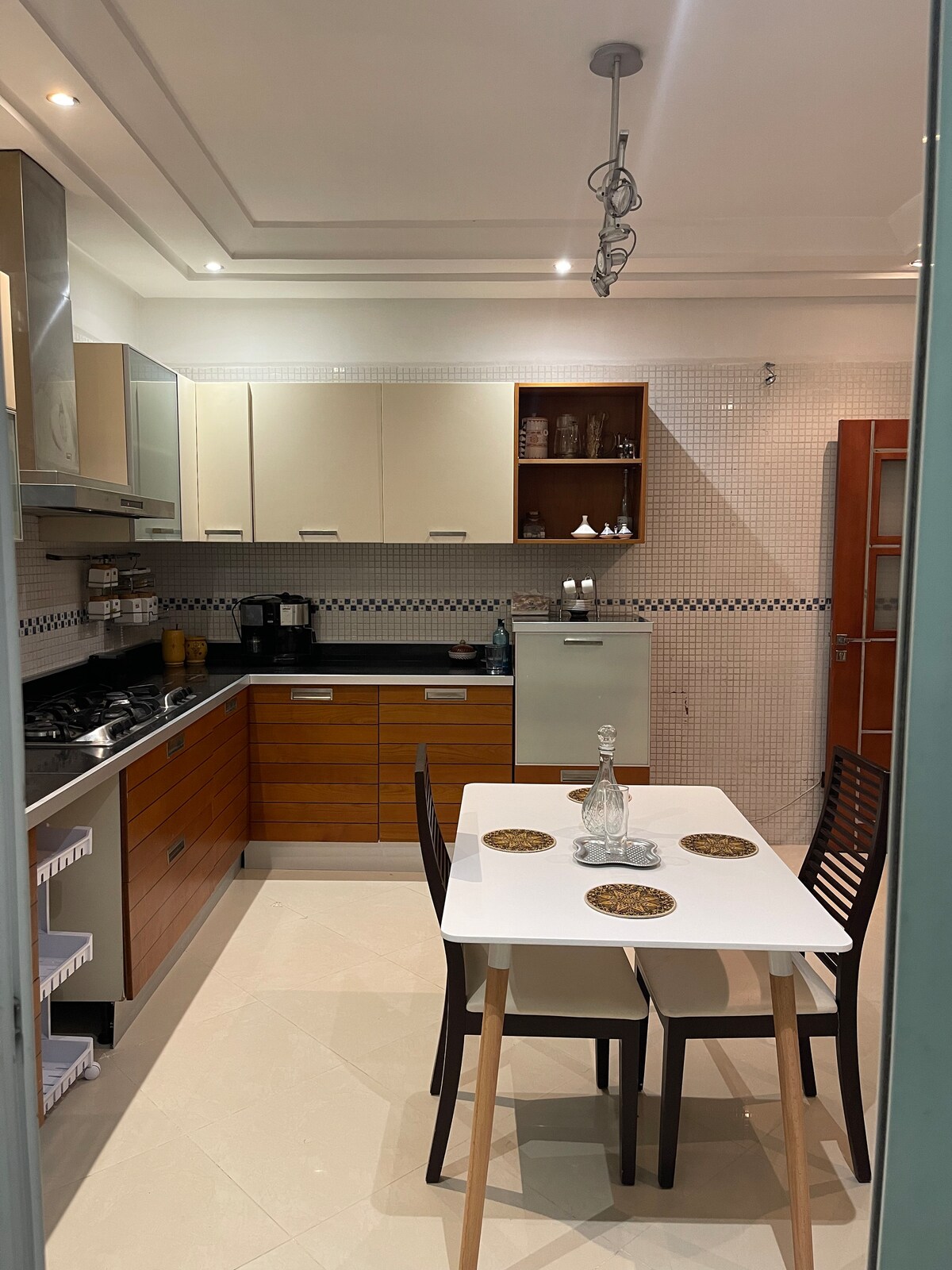 beau appartemnet situe dans un quartier residentiel chic , de 180 m2 ideal pour famille ou professinnels exigeants . avec vue panoramique , 4 Balcons,cuisine équipée de plaque en vitro et four et tous le necessaire 3chambre entourée restaurants et pâtisseries, à côté de la salle du sport moving et spa avec accès a parking privé et ascenseur et doté des cameras de surveillance 24/7 salon - salle a manger vaste et ouvert parfait pour recevoir des amis ou se detendre en famille .wifi haut débit