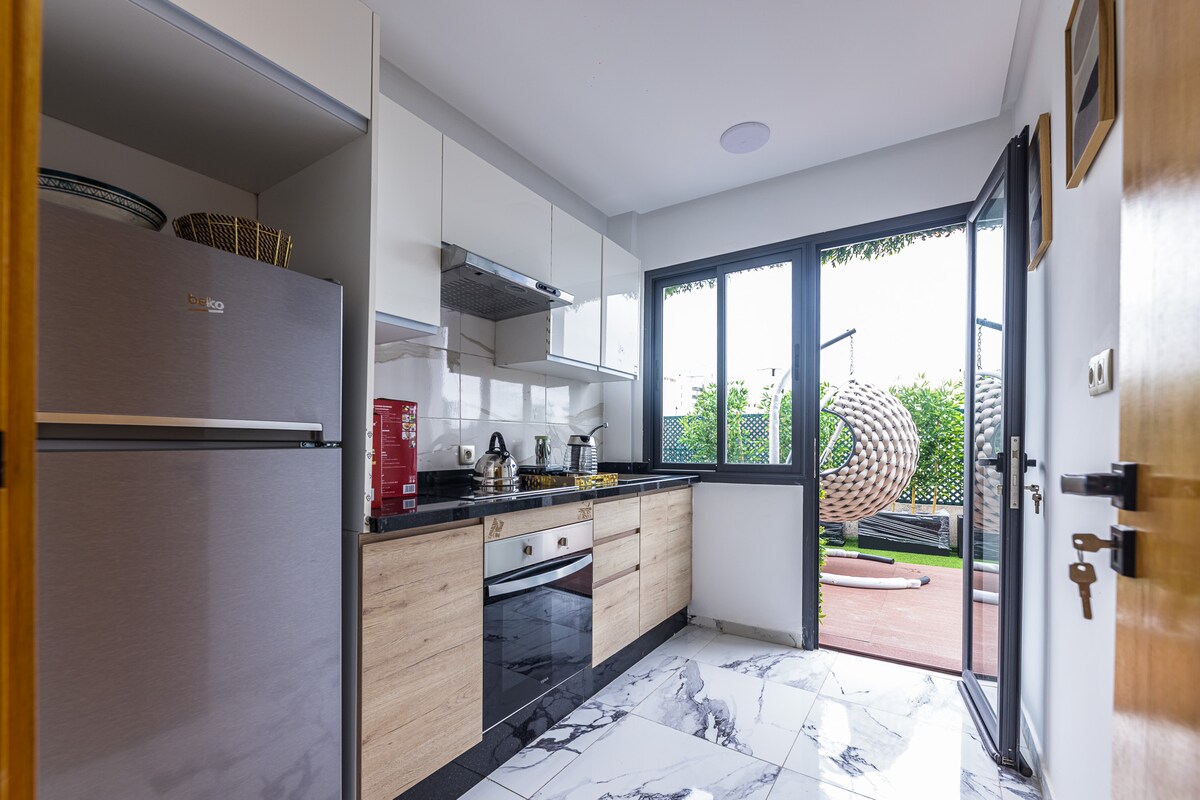 Dreaming of a luxury stay in Rabat in an elegant and secure setting? 🌟🏖️ Discover this beautiful apartment located in a gated and secure residence 🏢, just steps from Rabat Corniche 🌊, the large swimming pool 🏊 and Le Carrousel Mall 🛍️. The perfect location to enjoy the beach, restaurants, and the best attractions of the city. ✨ Three elegant bedrooms with comfortable bedding 🛏️ ✨ Private balcony with sea view 🌅🌊