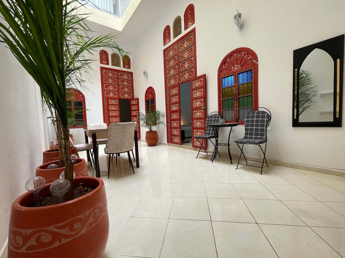tradicionalni Riad, ki se nahaja v Salt Medini (potop v lokalno življenje), zelo miren , v bližini je varovano parkirišče, TV Wi-Fi z brezplačnimi evropskimi kanali) , le kratek sprehod od marine in slane plaže, restavracij , opremljene kuhinje, pralnega stroja, pralnega stroja, pomivalnega stroja, televizije , posode in brisač, otroška postelja. opremljena terasa z majhnim pogledom na ocean, v bližini tramvajske postaje.