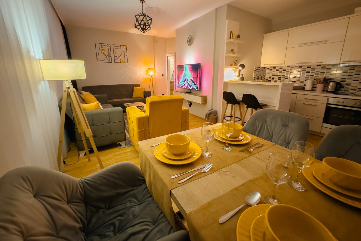 To dvosobno stanovanje s čudovitim razgledom se nahaja na popolni lokaciji in je kot nalašč za vaše potovanje v Tirano. Enota je opremljena z vsem, kar potrebujete, da bo vaše bivanje čim bolj udobno. Vedno lahko uživate v uporabi žara na 30 kvadratnih metrih terase s čudovitim razgledom. Naše stanovanje je oddaljeno od središča mesta, ulice Myslym shyri,muzejev, območja blloku, barov, trgovin, kavarn, nočnih klubov, muzejev. Odlična lokacija za vas, da odkrijete Tirano na najboljši način. Veselimo se, da vas bomo lahko sprejeli.