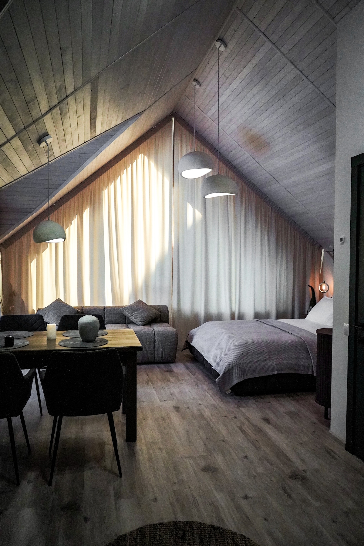 - Zasnovano za 4-6 oseb - Prostorna dvorana s kuhinjo in zložljivim kavčem za 2 osebi - 2 ločeni spalnici, vsaka z lastno kopalnico - Jedilnica z žarom z mizo, žarom in vsem za kuhanje na ognju - Terasa s kadjo in udobnim pohištvom za sprostitev Panoramski pogled na gore:) Veseli bomo, če boste v Mountain Viewu.