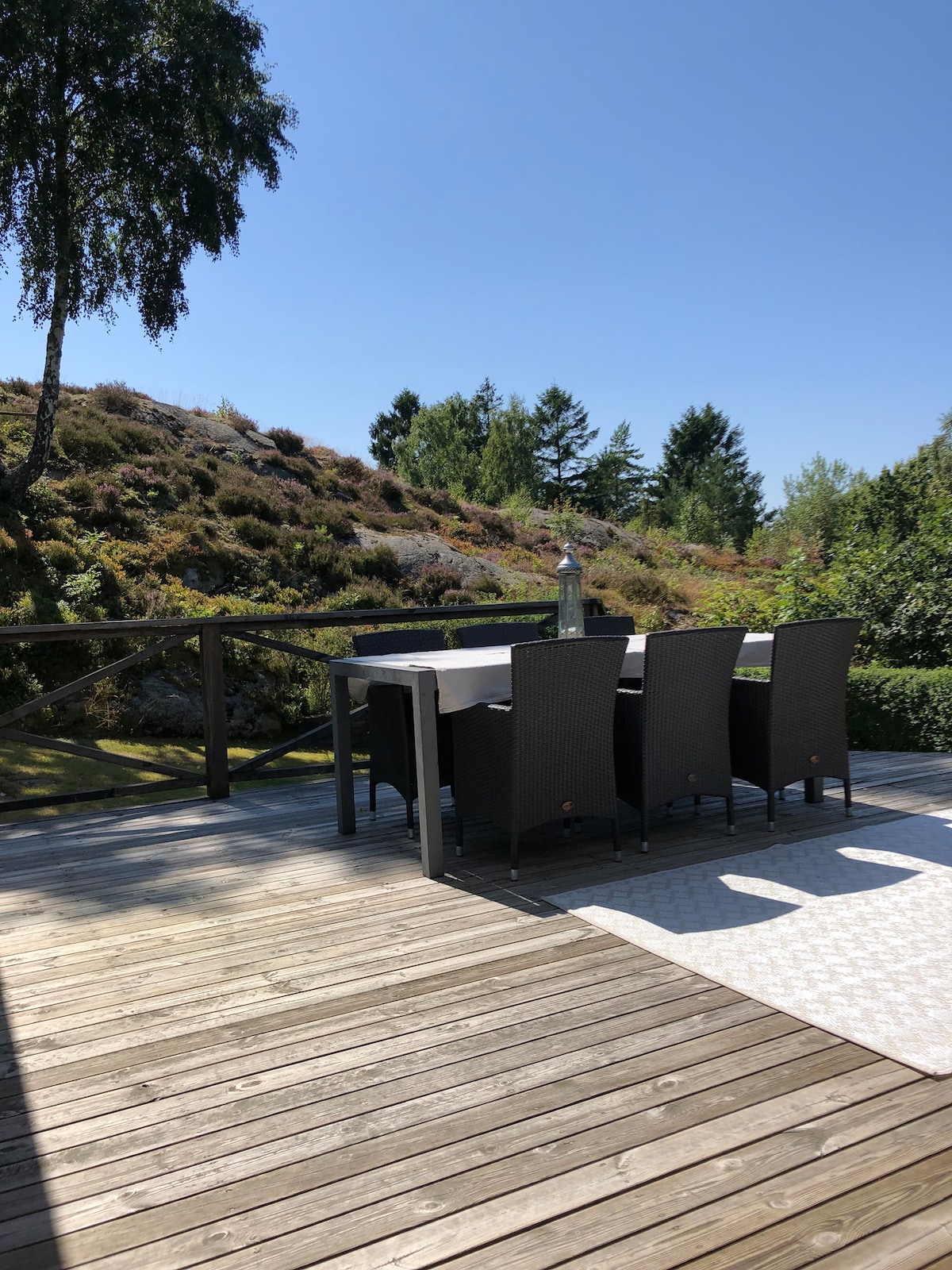 Hiška je popolnoma prenovljena, meri približno 65 m2 in ima lastno veliko teraso na čudoviti sončni legi z zunanjim pohištvom, tako z lounge kot jedilno garnituro s paviljonom. Na voljo je tudi zunanji žar. Velika parcela na mirni lokaciji. V bližini narave in morja! Ena najboljših lokacij na zahodni obali, v bližini biserov, kot so Tjörn, Orust in Marstrand.