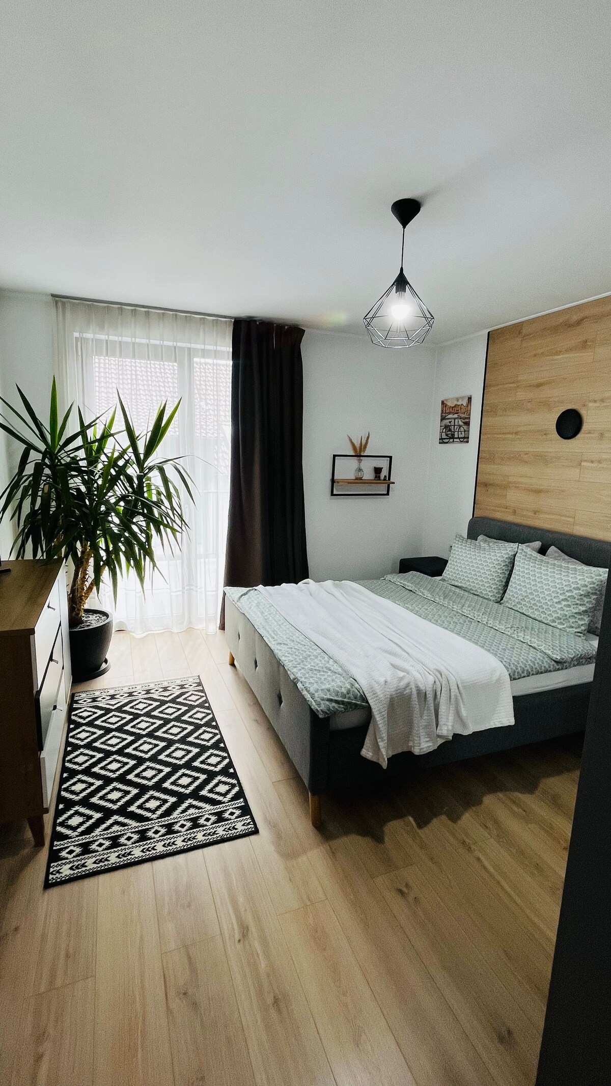 Welcome to our cozy apartment in Sibiu! Here you will find a comfortable and modern space, perfect for a family of 4. The apartment features 2 separate bedrooms, providing privacy and relaxation for all guests. Located in a quiet residential area, you will have the opportunity to enjoy a relaxing atmosphere and a peaceful night's sleep. It is conveniently situated just a 4-minute walk from the bus station and a 10-minute drive from the city center.